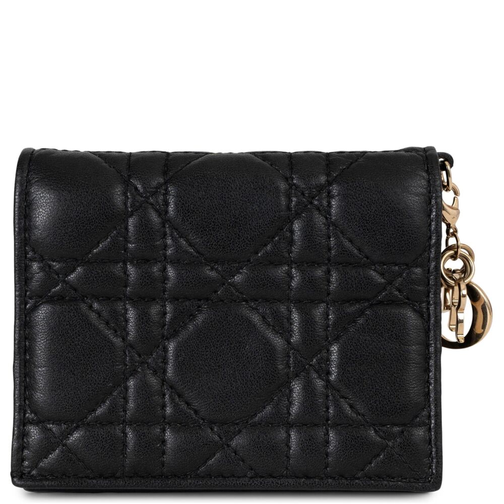 Welcome to LUX l Authentic Designer Consignment Rämistrasse 25, 8001 Zürich, Switzerland I Tue-Fri 11-18:30 & Sat 11-16:00 By bidding on our auctions you are agreeing to our Terms and Conditions below. All items come with authenticity guarantee! ------------------------------------------------------------------------------------------------------------------------------------------ Product Description: This 100% authentic Christian Dior Mini Lady Dior Gardenia wallet in black Cannage lambskin leather is a refined essential with an elegant touch. Featuring a detachable gold-plated D.I.O.R. charm, it exudes timeless sophistication. The wallet opens with a snap button to a well-organized interior lined in technical fabric, offering a zippered coin pocket, a bill pocket, a slip pocket, and five credit card slots. A compact yet functional piece, perfect for everyday elegance. Has been carried and is in excellent condition. Model S0178ONMJ M900 Width 9cm (3.5in) Height 11cm (4.3in) Depth 3cm (1.2in) Hardware Gold-Plated All our listings include only the listed item unless otherwise specified in the description above - Price does not include import duties & taxes - check your countries import laws prior purchase ------------------------------------------------------------------------------------------------------------------------------------------ Terms & Conditions Luxury-Shops is not affiliated with any of the name-brand items we offer for sale. Warranties and Liabilites: Luxury-Shops declines all responsibility and cannot be held liable for any damages caused by the use of a specific garment. We also cannot be held responsible for the quality of an item (we are not the manufacturer) or any damages resulting from a manufacturing defect. No warranties of any kind are given or implied. Condition of Merchandise: Luxury-Shops offers for sale luxury top-quality products. We fully disclose the condition of each item. In the description of each product, Luxury-Shops will specify the conditions if different from the standards set by the market (Required disclosure of prior use) The main characteristics of products are shown in great detail (through numerous photographs and in-depth descriptions). The products offered for sale MAY NOT correspond to the real garments in terms of image and color because of the Internet Browser or Monitor used (color calibration). Luxury-Shops disclaims all responsibility. Every used item offered by Luxury-Shops has been cleaned and restored to the best possible condition unless noted otherwise. Every used or vintage handbag has been polished and refinished. Your purchases will be sent to you ready to be used or worn. Please be aware that vintage items may be delicate and may not be as resilient as a brand-new item. Please take appropriate care when using a vintage item. Damage to items after receipt or use by customers is not the responsibility of Luxury-Shops. Luxury-Shops is a reseller of authentic designer and vintage merchandise. We are not an authorised dealer and are not affiliated with the brands we sell on our site. Store-new designer items are only available from an authorised dealer or the actual store. Once the item leaves the authorised dealer with a customer, the item is considered pre-owned. However, items can be pre-owned and in new condition - that is, never used by the owner. Below are the definitions of the descriptions we use. NEW : in new condition, that is, never used . This means the item may have been purchased by us from an authorized dealer or a store. New items may also be pre-owned, that is, purchased by one of our consignors and never used. These items may have minor signs of handling as would any item available at an authorized dealer or boutique given that customers would reasonably handle an item when trying it on or examining it for purchase. USED: the item has been carried or worn and may be in any of the conditions described below. PRISTINE/VIRTUALLY NEW : Appears to have been used only a handful of time and is nearly new in condition. May have very slight signs of having been used upon close inspection. EXCELLENT : Used and in top condition. There may be faint signs of wear, slight scratches, marks or nicks which are not particularly noticeable and will not affect the use or wear of the item. Our descriptions and photographs will clearly indicate the condition of the item. GOOD : Used, may be an older or well-loved item. There may be slightly more noticeable signs of wear, scratches or marks. These will not affect the wear or use of the item. Our descriptions and photographs will clearly indicate the condition of the item. VINTAGE : Typically around 20 to just under 100 years old. Our vintage items are carefully examined and selected. Most are gently or rarely used, meticulously stored or cared for and will come to you in a perfectly usable condition. However, these are unique items which may be of a finer and more delicate nature than brand-new items so please be sensitive to this and have reasonable expectations of their resilience. We do not make allowances for unreasonable expectations in the condition of our items. Product Descriptions: We make every effort to display the products featured on our web site as accurately as possible, using a large array of unaltered digital photographs and detailed descriptions. Our examination and assessment of merchandise is meticulous and conducted with great attention to detail. Our expertise and product knowledge comes from many years of experience with authentic designer and vintage items. We make as much effort as is humanly possible to disclose all relevant information required for you to be completely confident about your purchase. However, the display and colour capabilities of your computer monitor could affect the colours you see on the screen and these may differ from the actual product. Luxury-Shops is not responsible for monitor limitations and cannot guarantee that a monitor's dis