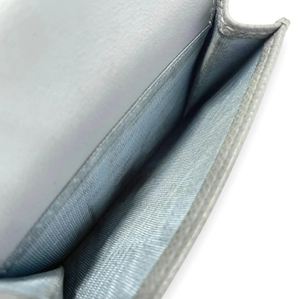 Absolutely love this wallet! The light blue color is stunning and the quality feels luxurious. Arrived in perfect condition and looks exactly as pictured. Very happy with my purchase!