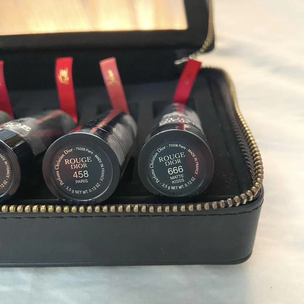 Christian Dior Rouge Dior Lipstick Set 5 Red Shades Mirror Case Key Features ## Product Overview This is a set of five Rouge Dior lipsticks in various red shades, presented in a stylish mirror case decorated with stars and lettering. The collection offers a versatile range of red tones, allowing for different nuances and expressions with each application. The set is brand new and unused, making it an ideal choice for Dior enthusiasts and collectors. ## Key Features and Benefits - **Premium Dior Quality:** Authentic Christian Dior Rouge Dior lipsticks known for their luxurious texture, rich pigmentation, and long-lasting wear. - **Variety of Red Shades:** Includes five distinct red hues—Midnight Wish 520, Feel Good 860, Rouge Tokyo 999, Paris 458, and Matte 666—each offering unique nuances suitable for various occasions. - **Elegant Mirror Case:** Comes with a beautifully decorated case featuring star and letter motifs, equipped with a mirror for convenient touch-ups on the go. - **Compact and Portable:** The case measures approximately 10cm in height, 19cm in width, with a depth of just under 4cm, making it easy to carry in your handbag. - **Complete Set:** Includes five lipstick refills and a decorative case, providing a complete and ready-to-use makeup set. ## Main Selling Points - Authentic Dior product with original packaging (box discarded, but refills are securely packaged) - Five high-quality red lipsticks in a stylish, collectible case - Perfect for makeup enthusiasts, collectors, or as a gift - Made in France, ensuring premium craftsmanship and quality - Condition: Brand new and unused ## Additional Information - The set includes a mirror-equipped case with star and text embellishments, designed for both aesthetic appeal and practicality. - The lipstick refills are designed for easy replacement, allowing for continued use of the elegant case. - Please note that the original box has been discarded; however, the refills are carefully packaged with cushioning for safe delivery. - This product is a popular model within the Rouge Dior line, renowned for its luxurious finish and vibrant color payoff. **Keywords:** Dior lipstick set, Rouge Dior, red lipstick, makeup gift set, luxury lipstick, collectible Dior, French cosmetics, mirror case, high-end makeup Specifications Brand Christian Dior Product Description Item Title Dior Rouge Couture Set Midnight Wish Payment Supports managed payments Please pay within 5 days after auction is finished. About Us We are located in Japan. It's our pleasure to make you happy by proposing our recommend item. If you have any questions or request about items, please feel free to ask us. International Buyers - Please Note: -Import duties, taxes, and charges are not included in the item price or shipping charges. These charges are the buyer's responsibility. -Please check with your country's customs office to determine what these additional costs will be prior to bidding/buying. -These charges are normally collected by the delivering freight (shipping) company or when you pick the item up - do not confuse them for additional shipping charges. -We do not mark merchandise values below value or mark items as - gifts - The US and International government regulations prohibit such behavior. Thank you for your understanding.
