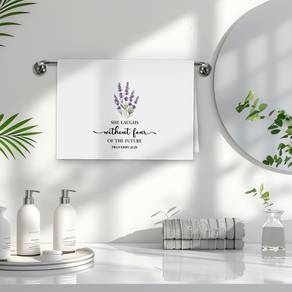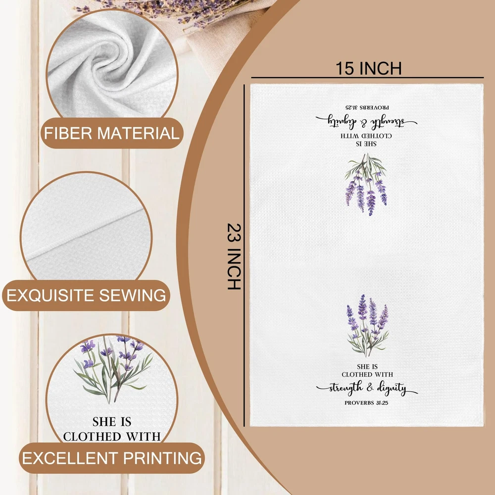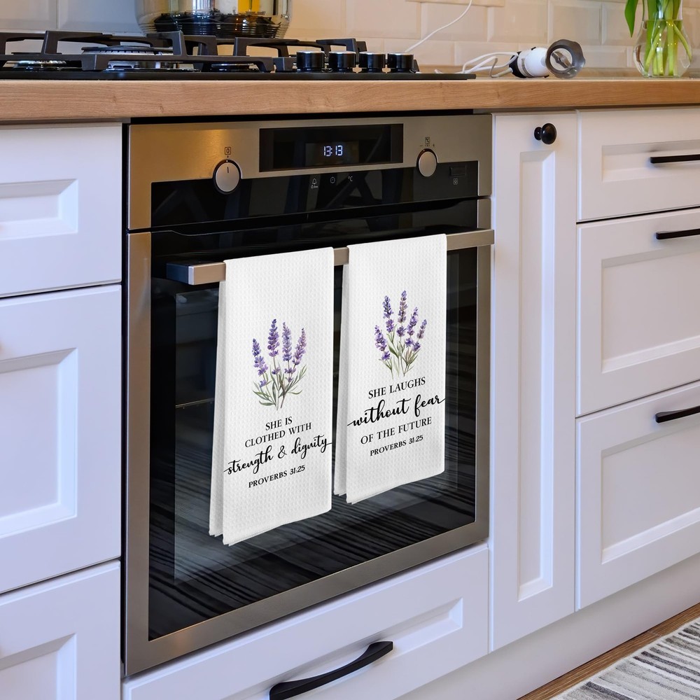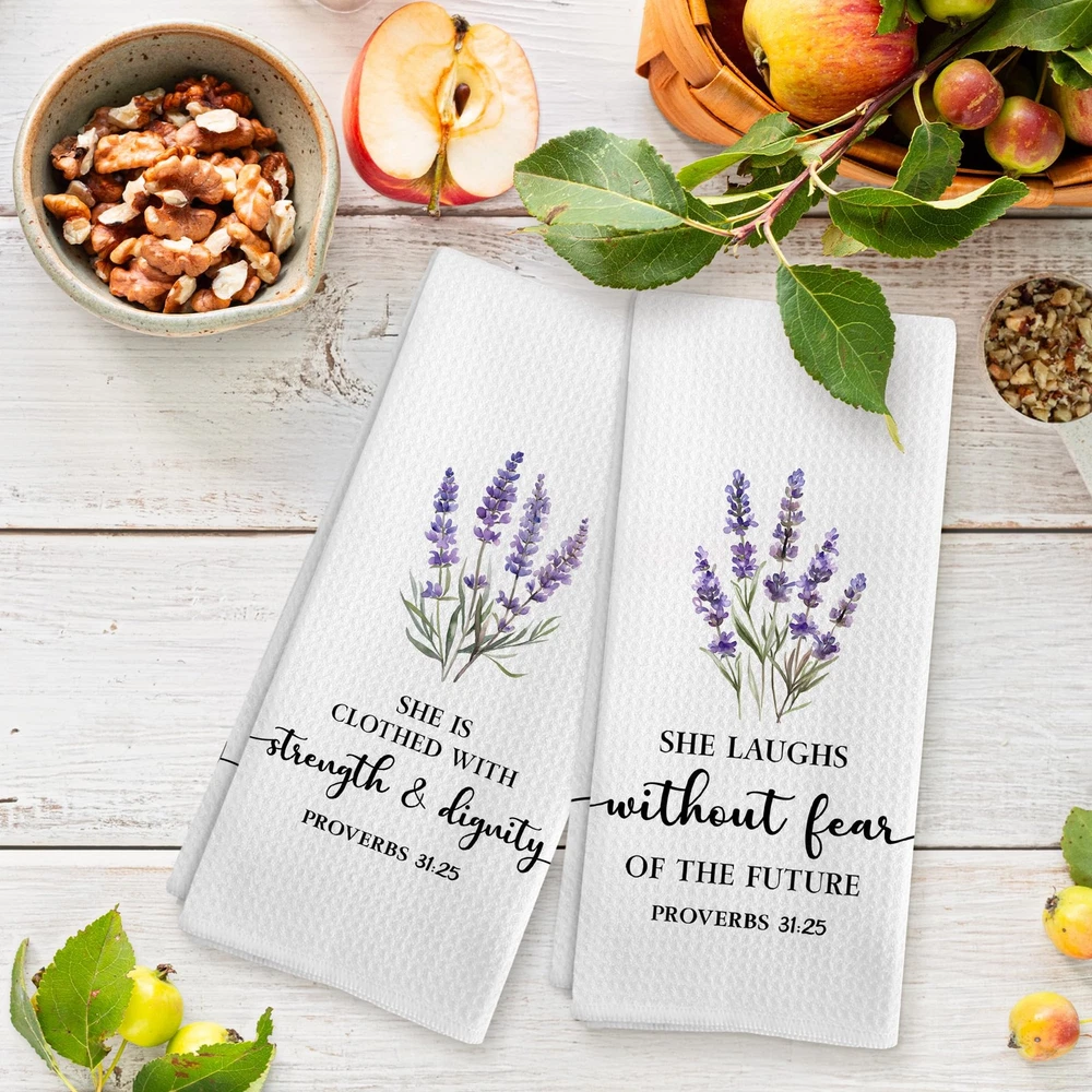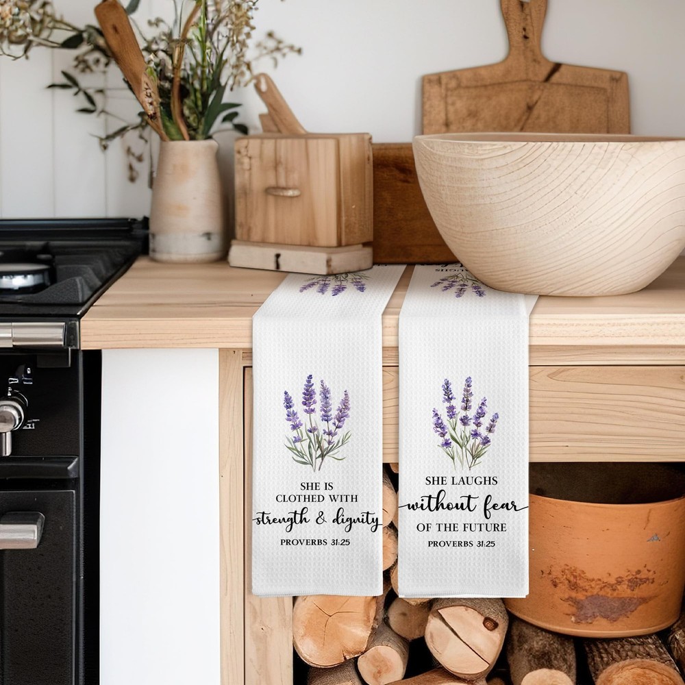 Christian Floral Kitchen Towels, Proverbs 31 Bible Verse Lavender Flower Kitc...