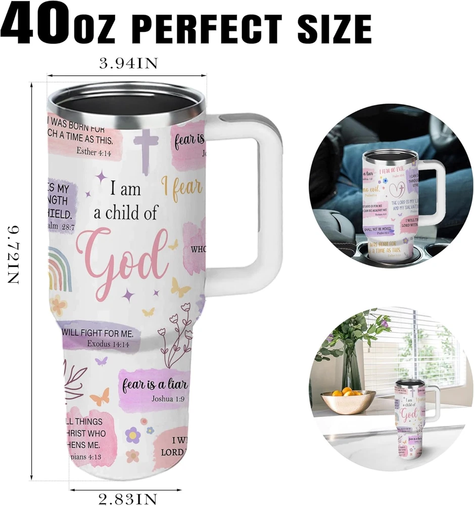 Store New Arrivals Add to Favorite View Feedback Contact Fast deliveries to the customer's home Quality customer service John Make the customers happy! Christian Gifts for Women - 40 Oz I Am a Child of God Tumbler with Handle, Inspirational Religious Birthday Gifts for Mom Wife Sister Friends - Christmas Christian God Jesus Bible Pastor Prayer Gifts Description 【Christian Gifts For Women】Religions quote Print with "I Am A Child Of God" and some Christian encouragement faith bible words, brings powerful strength & positive mood every time when see and read it, making people a unique happy. Suitable for Religious birthday gifts for mom, grandma, sister, daughter, wife, girlfriend, best friends, coworker or any female Faith in Christian. Also ideal as Faith Gifts for Women, Baptism Gifts for Girls, Catholic Spiritual Gifts for Women, Bible Gifts for Women 【High Quality-1】This religious coffee cup is made of food-grade stainless steel, bisphenol A-free, double-wall vacuum, not easy to break, and not easy to scratch. The ergonomic handle relaxes your hands, you can enjoy your drink at home, office, gym or on the go 【High Quality-2】Double-wall insulation provides a vacuum insulated coffee cup with a sweat-proof and non-clotting cup appearance that can keep your drink cold or hot at the right temperature for up to 6 or 12 hours, depending on the outside temperature 【With Lid and Straw】40 Oz stainless steel cup with 1 unbreakable straight steel straw and 1 bent steel straw, 1 free straw brush and 1 splash-proof sliding cover 【Inspiration Religions Gifts For Women】Perfect & Meaningful Religious & Faith Gifts for Birthday, Christmas, Valentines Day, Mothers Day, Graduation, Anniversary, Retirement, Easter, Thanksgiving or Others Holidays. Provide inspiration, give her a zest for life, give her strength and hope, it can help her overcome any challenges Product Description Multi-device maintenance of your car cup Two stainless steel straws included : One straight and one curved, providing flexible drinking options. Straw cleaning brush : Ensures thorough cleaning, promoting a hygienic drinking experience. Focus on health and hygiene : Designed to reduce the risk of diseases caused by poor hygiene, supporting a cleaner and healthier lifestyle in your daily routine. Safe Drinking, Quality in Every Detail Quality materials: From the durable construction to the stylish design, every detail reflects first-class craftsmanship. Simple structure: simple operation, suitable for the broad masses Glass 40 oz with professional design Increase capacity by 40 ounces to reduce refills and provide larger serving sizes The durable stainless steel construction can withstand the wear and tear of long-term use Ergonomically designed handle for comfortable and secure grip Item model number Christian2-40oz Style Modern Number of Items 1 Pattern Solid Country of Origin China Theme Christian, Religions, God, Faith, Bible Unit Count 40.0 Ounce Product Dimensions 3.94"W x 9.72"H Material Stainless Steel Capacity 2.5 Pounds Package Type [Standard] Specific Uses For Product Hot and Cold Drinks, Home and Travel Material Type Free Lead Free, BPA Free Reusability Reusable Item Weight 1.37 pounds Material Feature Insulated Occasion Mother's Day, Christmas, Birthday, Valentine's Day Special Feature Large capacity, Insulated Color Christian - I AM A Child Of God(Purple) Shape Round Recommended Uses For Product Travel, Home Included Components Cups, Lid Product Care Instructions Hand Wash Only ABOUT US We offer the best prices around on high quality products. Our E-store includes media such as books, movies, music and games while offering electronics, toys, sporting apparel, clothing, tools, general home, garden items and more. SHIPPING We are always working hard to ensure your package arrives as soon as possible. Please understand that some factors like weather, high postal traffic, and the performance of shipping companies are outside of our control. We offer free shipping to the lower 48 states and ship within 2 business days of payment, usually sooner. We do not accept P.O. Boxes. Please provide a physical address. For shipping outside of the continental USA, we only use eBay's Global Shipping Program. The item is shipped to KY and then sent to the rest of the world. International customers are responsible for all duties and taxes. Continue to 'check out' to calculate costs for shipping the item to your country. Messages regarding eBay's Global Shipping Program MUST be directed at eBay EXCLUSIVELY. RETURNS We offer a 30-Day Return Policy on items in which you are not completely satisfied with. You have the option of a full-refund or an exchange of the item. No returns are available on items shipped outside of the USA PAYMENT We accept PayPal. CONTACT US This page content is yet to come Please ad us to your favorite seller and visit again later Thank You CUSTOMER SATISFACTION We try our very best to make sure every customer is completely satisfied. If there's a problem, message us! We're happy to help. WE ACCEPT