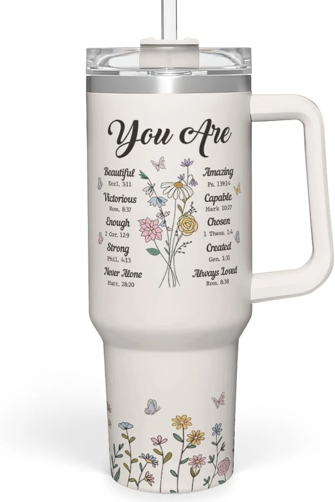 Please be aware that the final product might look slightly different compared to the images shown due to different computer monitors or mobile color display Hydration in style: our 40 ounce tumbler with handle is big enough to conquer your thirst while adding a stylish touch to your daily routine; plus the practicality of the tumbler makes excellent gift option for cherished ones Keeping our drinks delectable: the tumbler is made with stainless steel alongside a double walled insulation construction to keep the drinks cold or hot for a long time; with a 40 ounce capacity, you don''t have to refill all the time Good to bring anywhere: with a comfortable handle, this tumbler offers convenience, allowing you to effortlessly carry the cup in various settings, including home, office, gym, camping, vacation, sports, travel, and more Worthwhile gift to all: with many designs to choose from, you can easily find a tumbler that suits your taste or your love ones'' taste; as for cleaning, we highly recommend washing the tumbler by hands