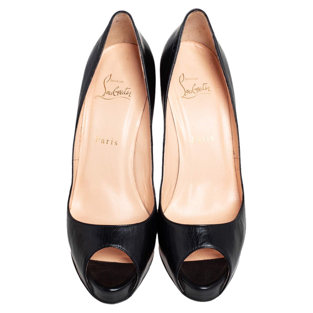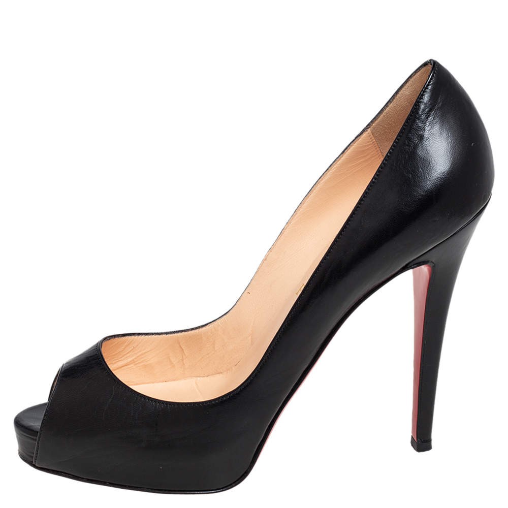 Our eBay Store About Us Contact Us Add to Favorite Sellers Christian Louboutin Black Leather Very Prive Peep Toe Pumps Size 385 This pair of New Very Prive pumps by Christian Louboutin is a timeless classic. Step out in style while flaunting these leather shoes that come in classic black to be ideal for all occasions. They feature peep toes, platforms, and 12 cm heels. Product Details Brand Christian Louboutin Color Black Includes Original Dustbag Size 38.5 Outsole Length 21 cm Outsole Width 7.5 cm Certified by The Luxury Closet This item has gone through a detailed authentication process overseen by our experts. We offer a lifetime guarantee of authenticity on all our items. How We Check The in-house team of experts at The Luxury Closet is highly trained to verify the authenticity and the condition of the luxury products. They ensure that only 100% authentic items are put on sale.The evaluation process is unique with its own mix of assessment criteria and differs according to the category. Each item is evaluated based on the following combination of hallmarks, hardware, stitching, symmetry, material, craftsmanship, stamping, codes, hologram stickers, and packaging. Our authenticators also check if the items have been modified or amended (e.g., aftermarket diamonds, replaced batteries, repaired bags, etc.) International Buyers Import duties, taxes and charges are not included in the item price. These charges are the buyers responsibility. Please check with your country’s customs office to determine what these additional cost will be prior to buying.