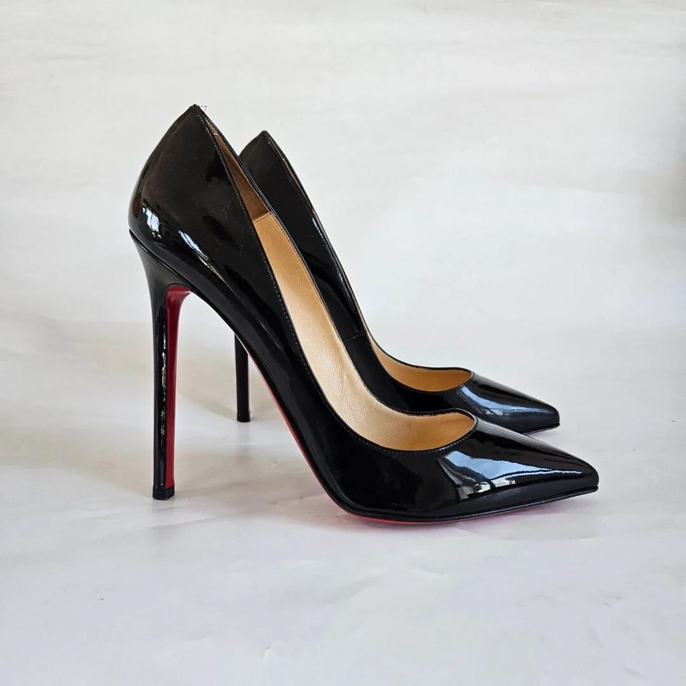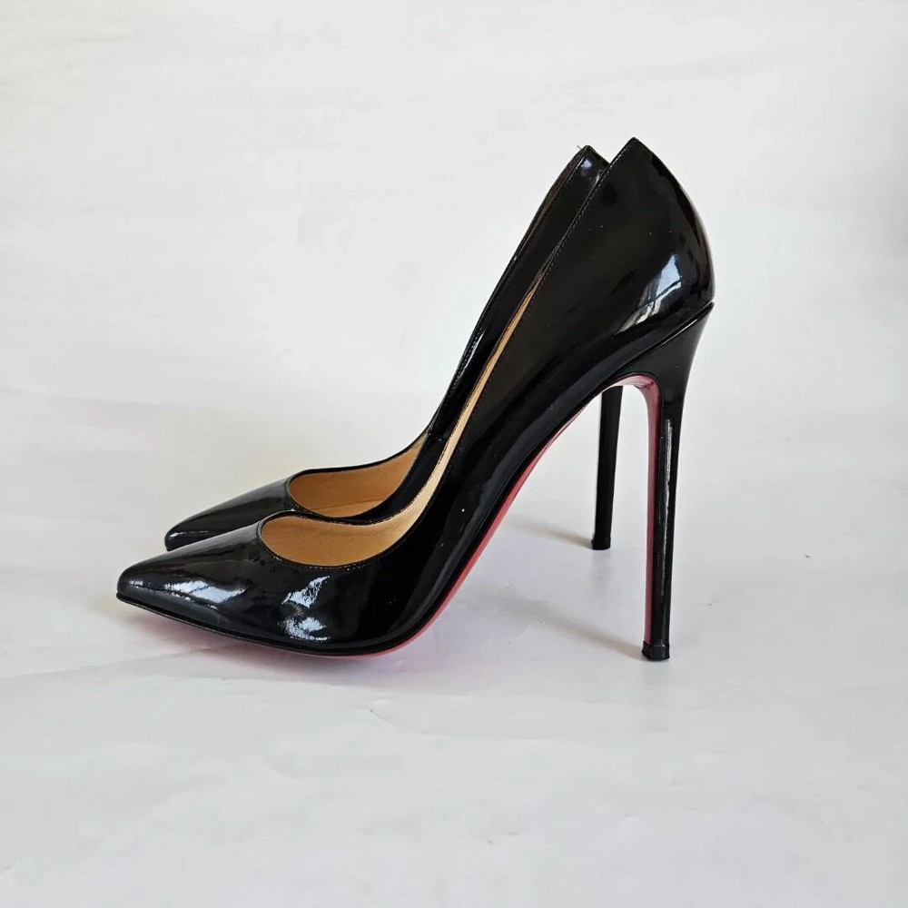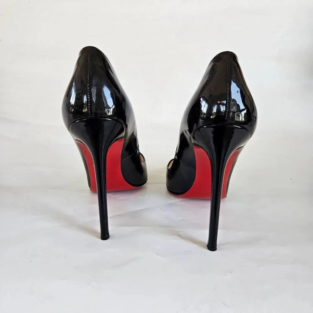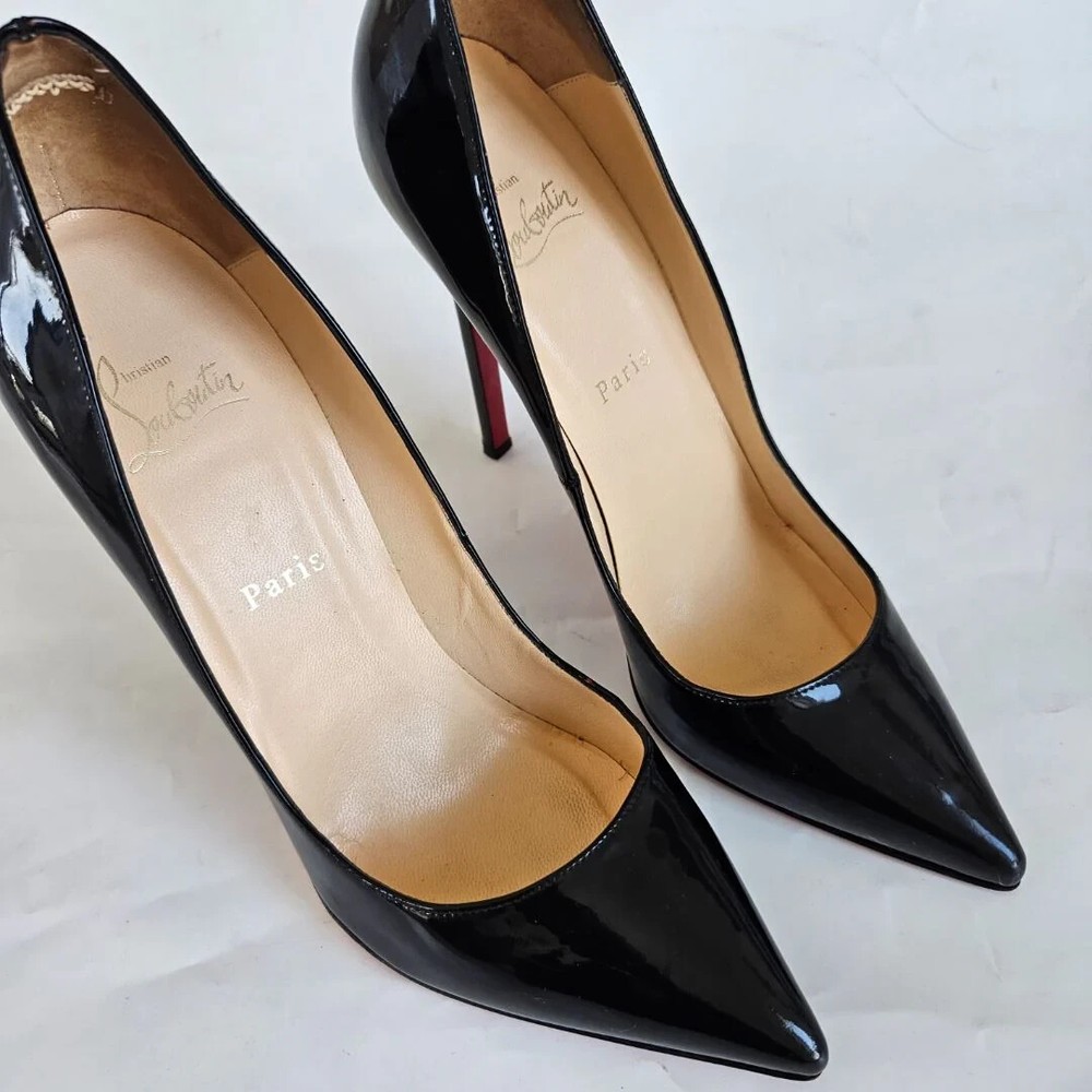 Style: Pump Seller Notes: “Excellent; gently worn” Department: Women Type: Heel Upper Material: Patent Leather UK Shoe Size: 6.5 Brand: Christian Louboutin US Shoe Size: 9 Color: Black Country of Origin: Italy