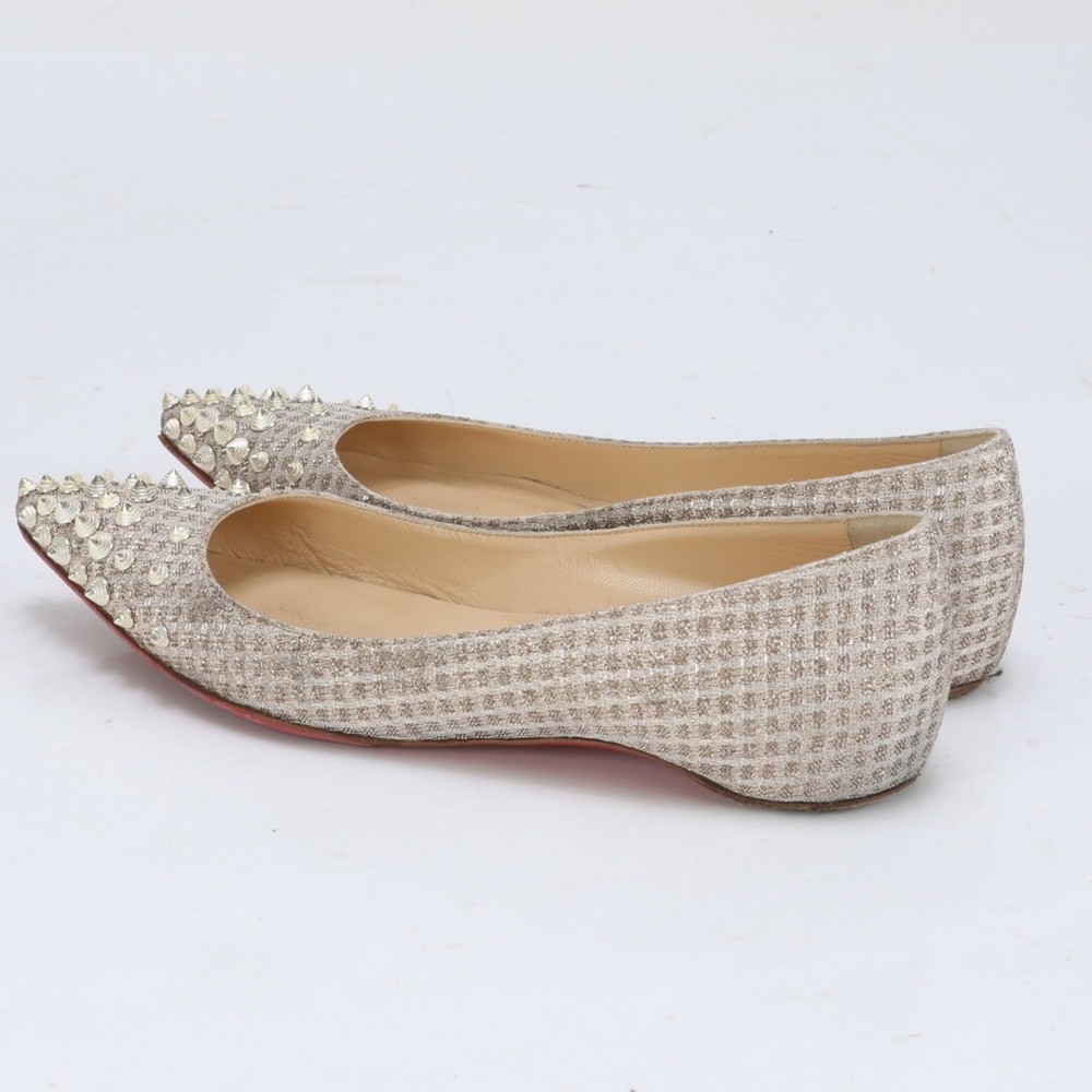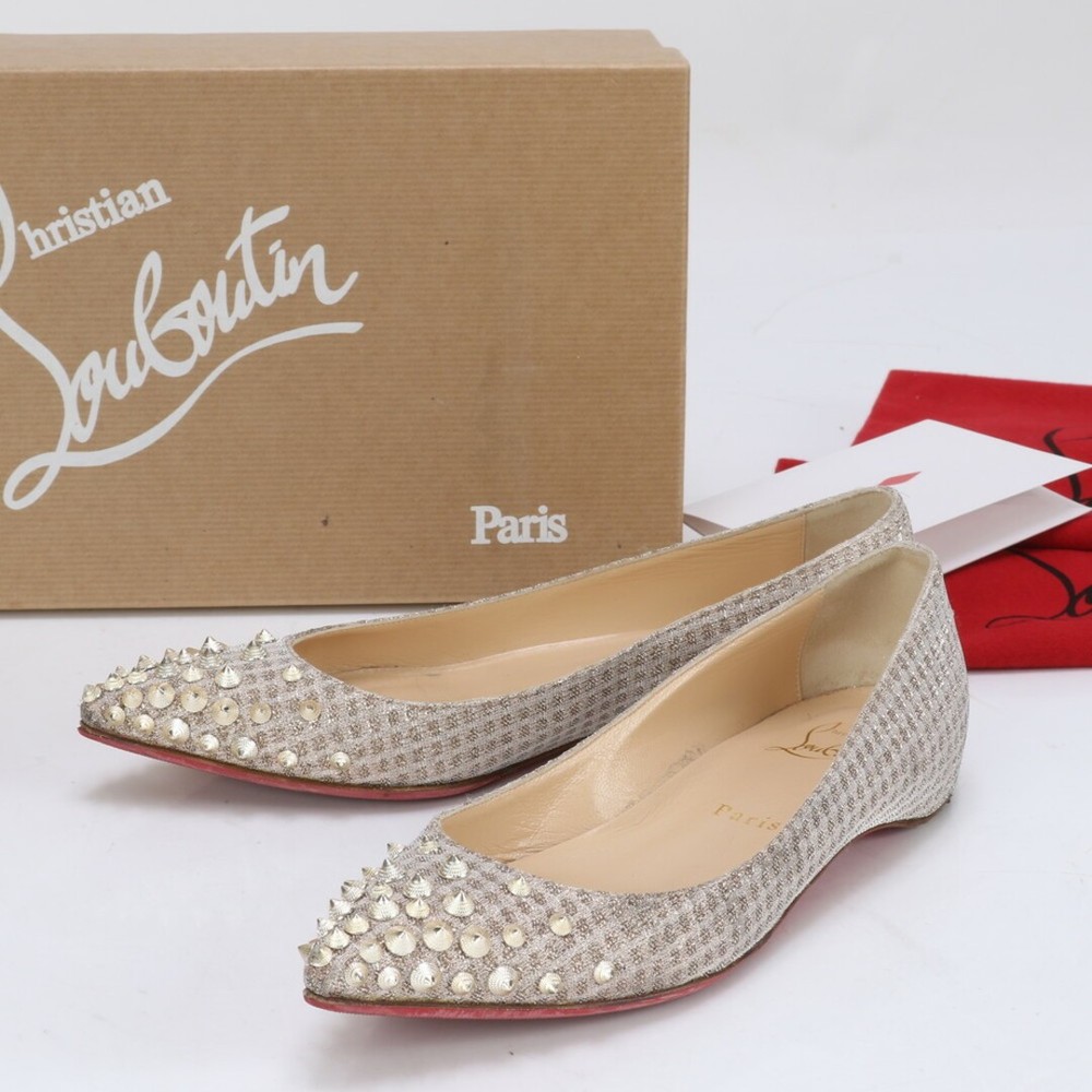 Christian Louboutin Spiked Stud Ballerina Pumps 35.5EU Black Women Key Features **Product Description:** - Brand: Christian Louboutin - Product Type: Women's Shoes - Model: Not specified - Size: EU 35 1/2 (JP 22.5 cm) - Length: Approximately 26 cm - Width: Approximately 8 cm - Color: Champagne Gold - Country of Manufacture: Italy - Condition: with minor scuffs and stains; sold as-is. **Detailed Features:** - Includes accessories shown in images. - Condition ranks: Outer A/B, Inner A/B. - Please note that the item may have some wear due to previous use. **Item Specifics:** - Brand: Christian Louboutin - Size: EU 35 1/2 (JP 22.5 cm) - Color: Champagne Gold - Condition: - Country of Manufacture: Italy Specifications Brand Christian Louboutin Department Women EU Shoe Size 35.5EU Product Description This is a used item.We will ship the product in the photo.If you have any questions about the condition, etc., please feel free to contact our store. Shipping We ship all items with tracking numbers. We decide the delivery company depending on the area you live in. If you wish to use a freight car, please make sure to contact us in advance. Depending on your area, delivery fee to the remote area may be charged separately. In that case, additional charges may apply. If you are concerned, please let me know the area before purchasing. Depending on your area, you may be charged by your local shipping company. There is also a problem with the local shipping company, so I recommend you to check beforehand. International Buyers - Please Note: Import duties, taxes, and charges are not included in the item price or shipping cost. These charges are the buyer's responsibility. Please check with your country's customs office to determine what these additional costs will be prior to bidding or buying. Please Note: Consoles and game consoles are products for Japan. All displays are in Japanese. Only Japanese software may be available. Please check if it is available in your country before purchasing. Electrical Appliances: AC 100 For 100 V electrical appliances used in Japan, a transformer may be required for use in your country. Please confirm before purchase or feel free to contact us if you have any questions. About returns Points to note when returning items. ●Unopened. ●unused. The inquiry must be made within the due date. If you have any questions, please feel free to ask. We will always respond politely and sincerely.