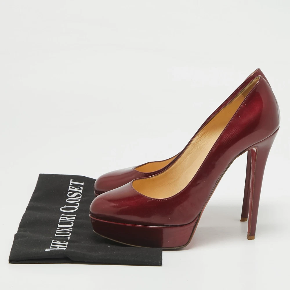 Make a statement with these Christian Louboutin red pumps for women. Impeccably crafted, these chic heels offer both fashion and comfort, elevating your look with each graceful step.Certified by The Luxury Closet - This item has gone through a detailed authentication process overseen by our experts. We offer a lifetime guarantee of authenticity on all our items. Import duties, taxes and charges are not included in the item price. These charges are the buyers responsibility. Please check with your country’s customs office to determine what these additional cost will be prior to buying. Our eBay Store About Us Contact Us Add to Favorite Sellers Christian Louboutin Burgundy Patent Leather Bianca Platform Pumps Size 38.5 $225.5 Make a statement with these Christian Louboutin red pumps for women. Impeccably crafted, these chic heels offer both fashion and comfort, elevating your look with each graceful step. Product Details Brand Color Red Dimensions Material Patent Leather Size 38.5 Outsole Width 6.5 cm Outsole Length 21.5 cm Heel Height 13.5 cm Includes The Luxury Closet Packaging Certified by The Luxury Closet This item has gone through a detailed authentication process overseen by our experts. We offer a lifetime guarantee of authenticity on all our items. How We Check The in-house team of experts at The Luxury Closet is highly trained to verify the authenticity and the condition of the luxury products. They ensure that only 100% authentic items are put on sale.The evaluation process is unique with its own mix of assessment criteria and differs according to the category. Each item is evaluated based on the following combination of hallmarks, hardware, stitching, symmetry, material, craftsmanship, stamping, codes, hologram stickers, and packaging. Our authenticators also check if the items have been modified or amended (e.g., aftermarket diamonds, replaced batteries, repaired bags, etc.) International Buyers Import duties, taxes and charges are not included in the item price. These charges are the buyers responsibility. Please check with your country’s customs office to determine what these additional cost will be prior to buying.