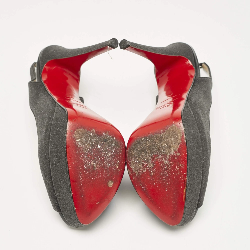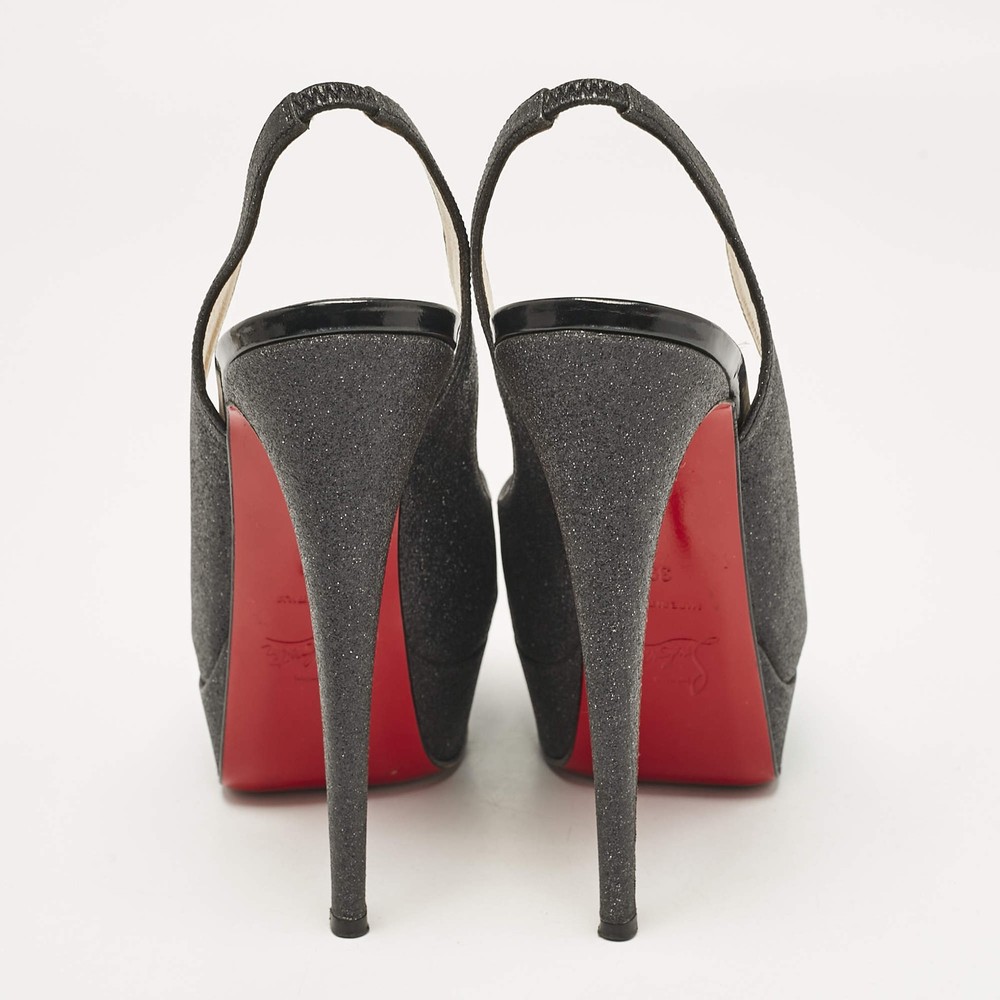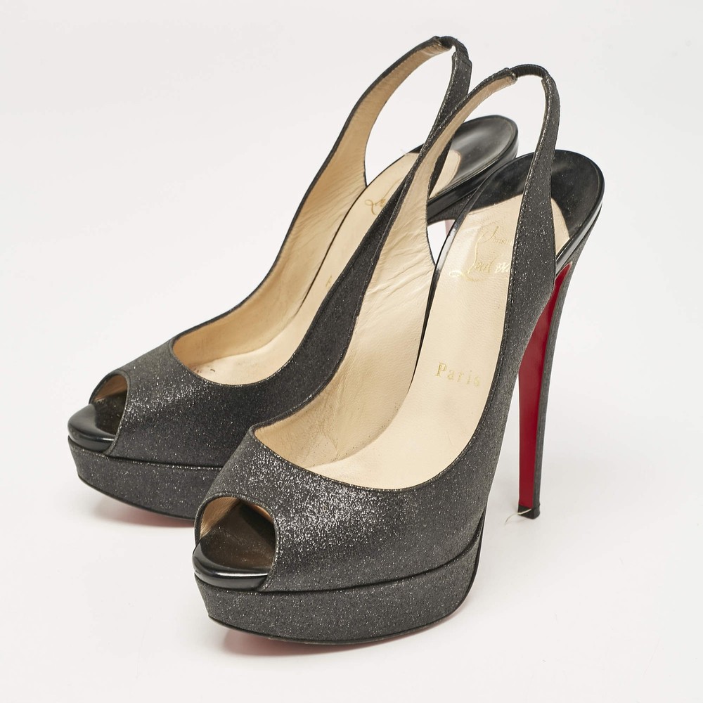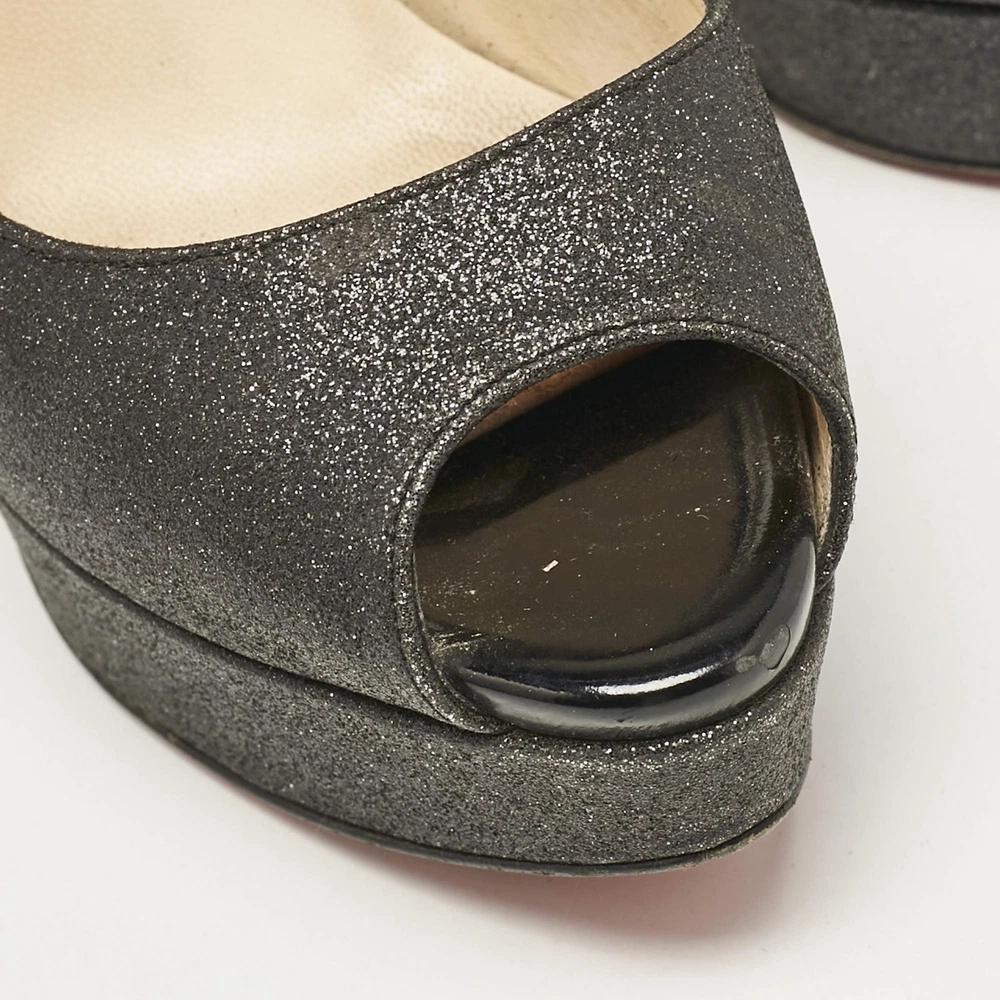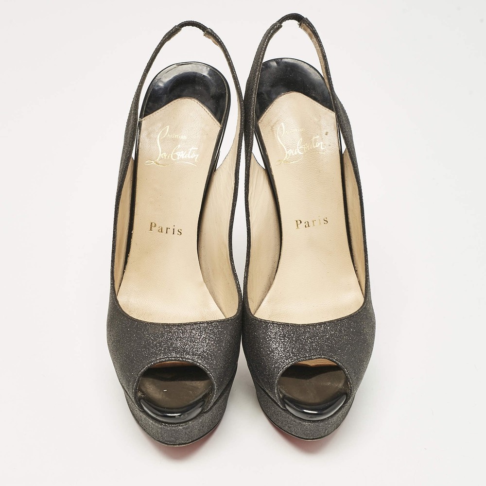 Christian Louboutin Grey Glitter Lady Peep Slingback Pumps Size 39