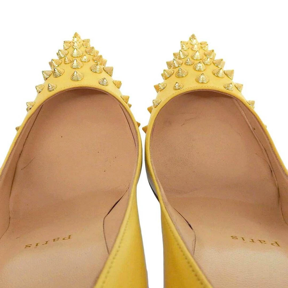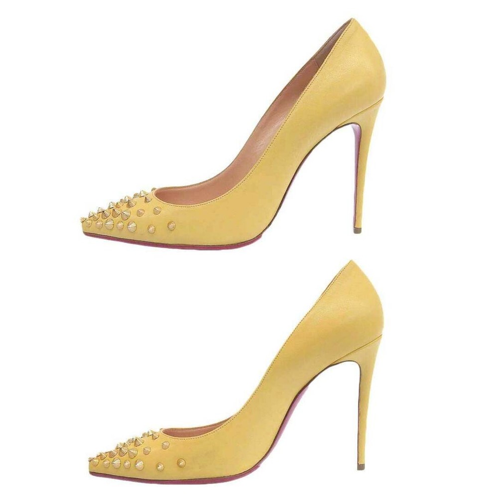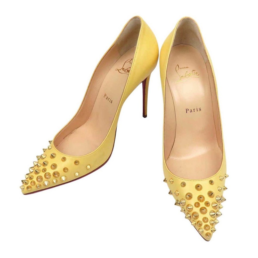Christian Louboutin Spike Studs Leather Pumps 37EU Key Features **Product Description:** - **Brand Name:** Not specified - **Product Type:** High Heel Pumps - **Model/Product Name:** Spike Studs Leather High Heels - **Target Audience:** Women's footwear **Detailed Features:** - **Color:** Yellow - **Size:** 37 (approximately 24 cm) - **Heel Height:** Approximately 10.5 cm - **Material:** Details available on the product tag image **Condition of the Item:** - Minor scratches and stains on the exterior - Stains on the insole Item Specifics: - **Product Number:** 235712 - **Size:** 37 - **Approximate Size in Japan:** 24 cm - **Heel Height:** 10.5 cm - **Color:** Yellow - **Condition:** , with scratches and stains Specifications Brand Christian Louboutin Department Women EU Shoe Size 37EU JP Shoe Size 24 Product Description This is a used item.We will ship the product in the photo.If you have any questions about the condition, etc., please feel free to contact our store. Shipping We ship all items with tracking numbers. We decide the delivery company depending on the area you live in. If you wish to use a freight car, please make sure to contact us in advance. Depending on your area, delivery fee to the remote area may be charged separately. In that case, additional charges may apply. If you are concerned, please let me know the area before purchasing. Depending on your area, you may be charged by your local shipping company. There is also a problem with the local shipping company, so I recommend you to check beforehand. International Buyers - Please Note: Import duties, taxes, and charges are not included in the item price or shipping cost. These charges are the buyer's responsibility. Please check with your country's customs office to determine what these additional costs will be prior to bidding or buying. Please Note: Consoles and game consoles are products for Japan. All displays are in Japanese. Only Japanese software may be available. Please check if it is available in your country before purchasing. Electrical Appliances: AC 100 For 100 V electrical appliances used in Japan, a transformer may be required for use in your country. Please confirm before purchase or feel free to contact us if you have any questions. About returns Points to note when returning items. ●Unopened. ●unused. The inquiry must be made within the due date. If you have any questions, please feel free to ask. We will always respond politely and sincerely.