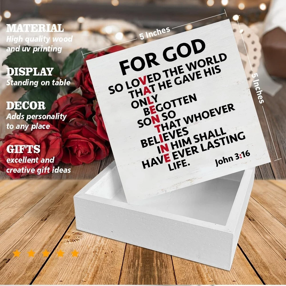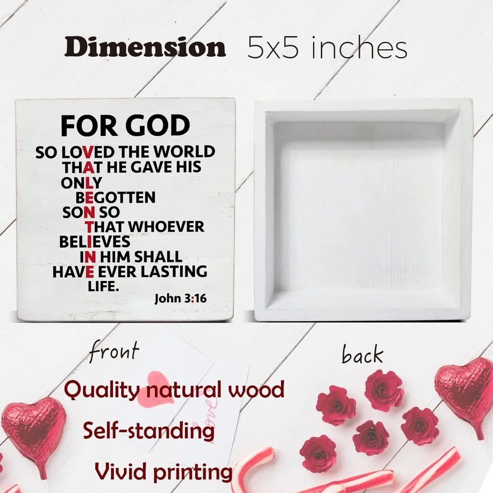About this item Cute Size: The size is about 5 inches x 5 inches. Valentine's Day Decoration - This valentines decor is full of romantic atmosphere; suitable for weddings, anniversaries. It can be placed in the living room, bedroom, kitchen, tables, shelves, cabinets or any occasion. Valentine's Day Gift - This romantic valentines day decor sign is a great gift to give to your wife, husband, boyfriend, girlfriend, etc. High-quality Material - The material of valentines day decor sign is made of high-quality wood, with clear printing, beautiful appearance and durability. Tabletop Decor - It is suitable for placing on a flat surface for decoration, such as countertops, desk tops, table, bookshelves, coffee tables, etc.