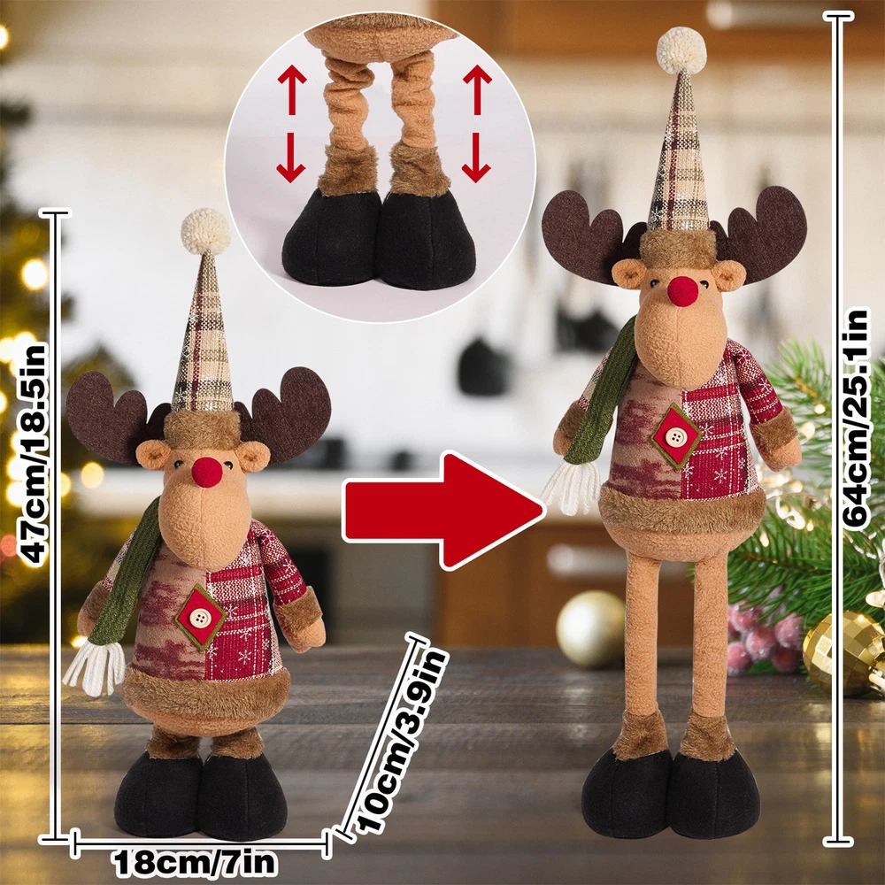Specification: Type: Christmas ornament Material: Velvet+PP cotton+telescopic rod+sandbag+other accessories Package: 1x Christmas ornament Features: Perfect Xmas Home Decoration:The standing Santa gnome Elk gnome Snowman gnome are perfect Christmas decoration for home, office, bar, hotel. Santa gnomes goes particularly well with your festive decorations. These will bring you warmth and joy. Premium Material: gnome is made of high-quality materials such as velvet, PP cotton, telescopic rods, sandbags, and other accessories Our plush gnomes are exquisite handicrafts, specially designed for holiday decorations, which can add a festive atmosphere to your holiday. Retractable Long Legs Gnome: This handmade standing Christmas gnome features adjustable legs with spring inside. Standing gnome figurine can fully extend from 45CM up to 76CM. One of the most cost-efficient decoration for Christmas. Cute Standing Gnomes Christmas Decorations: Gnomes are best known for guarding earthly treasures providing good luck and are perfect for protecting your Christmas goodies. Add some mystical enchantment to your holiday decor with this charming gnome. Perfect Gift:Modeling lovely plush Christmas ornaments dolls with classical Christmas elemen t,Put these gnomes on desk, table, bookcase, shelf, bedside, fireplace, windows, coffee corner, porches, gardens, front-door, under Christmas tree. add the festival atmosphere, fashionable and novel, perfect as gift for friends, girls and your family.