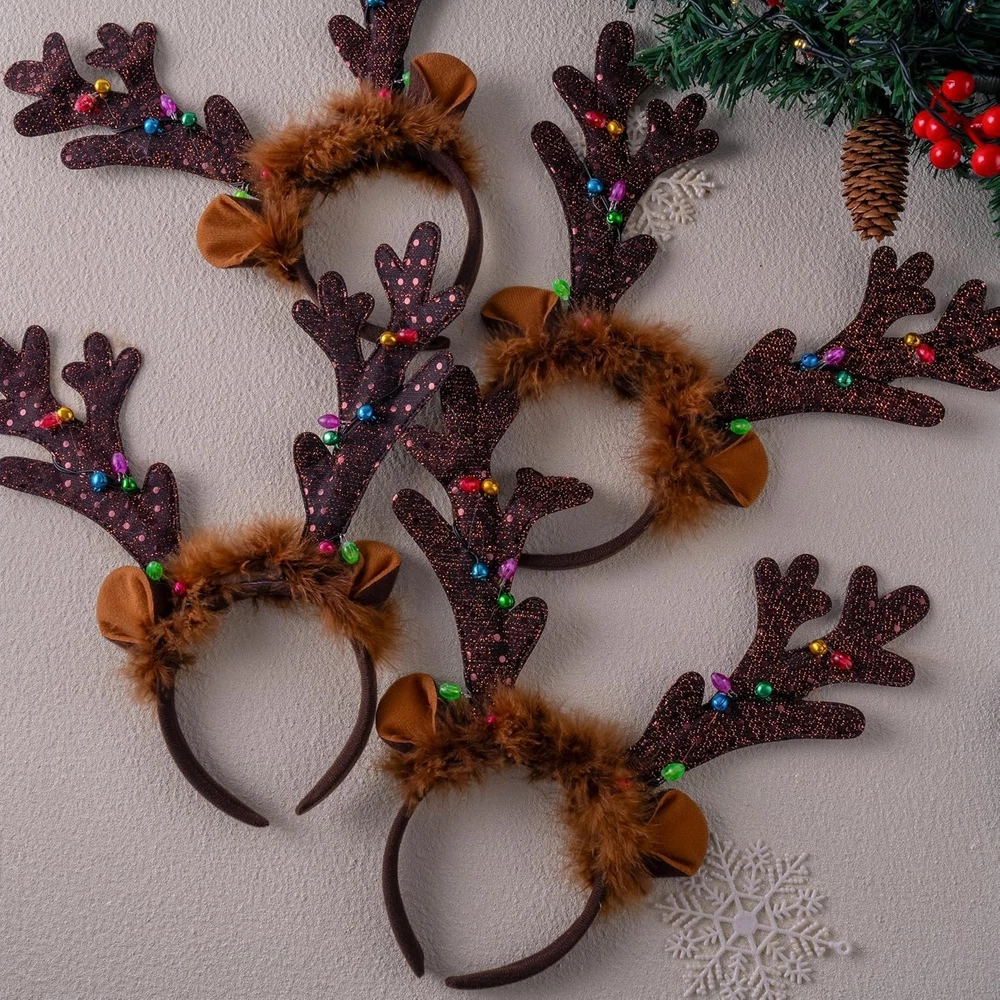 Christmas 2PCS Light Up Cute Reindeer Headband Adult Kids