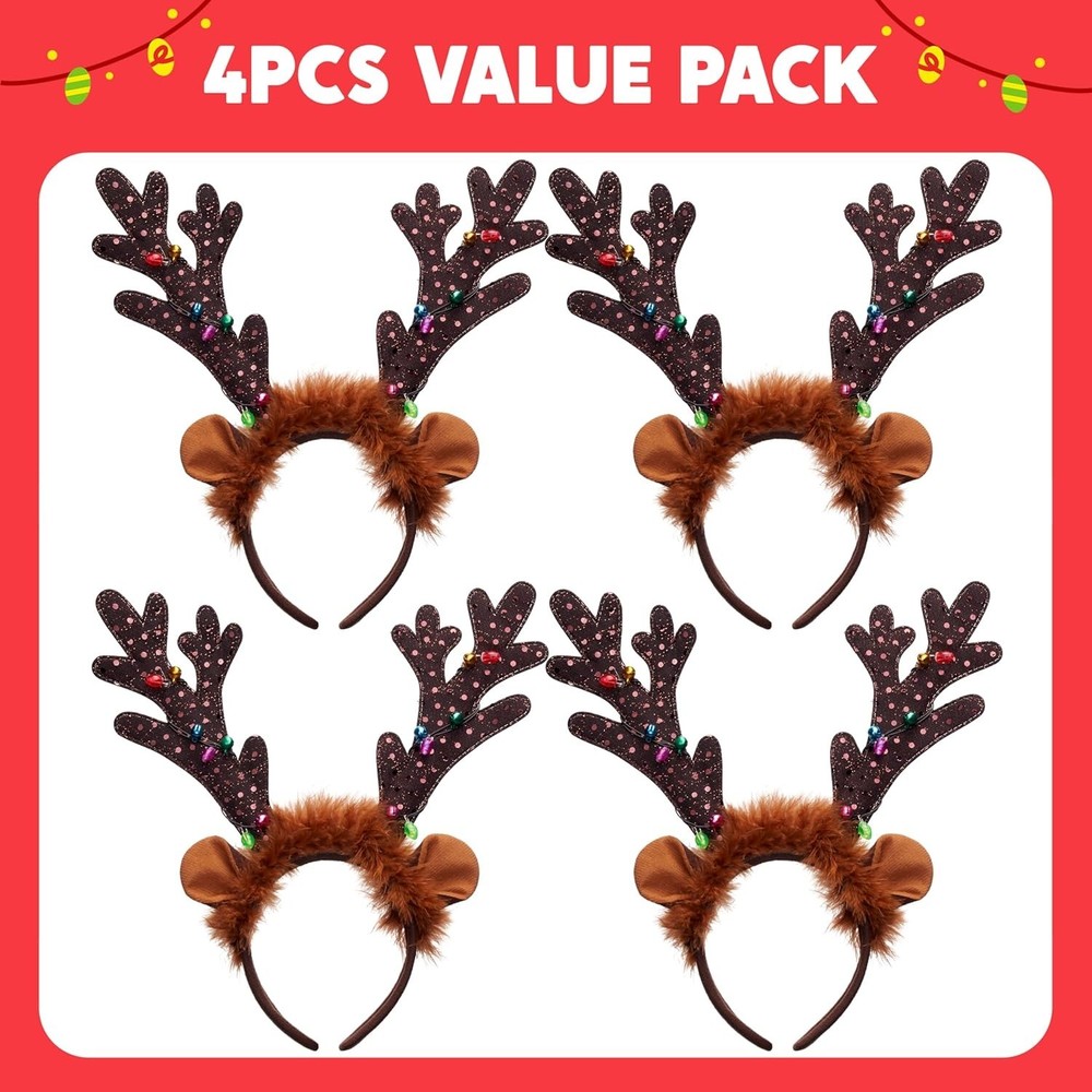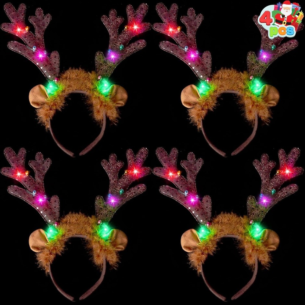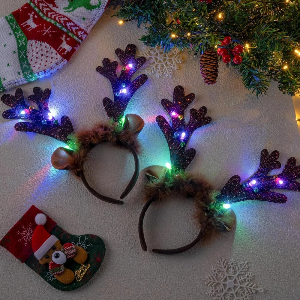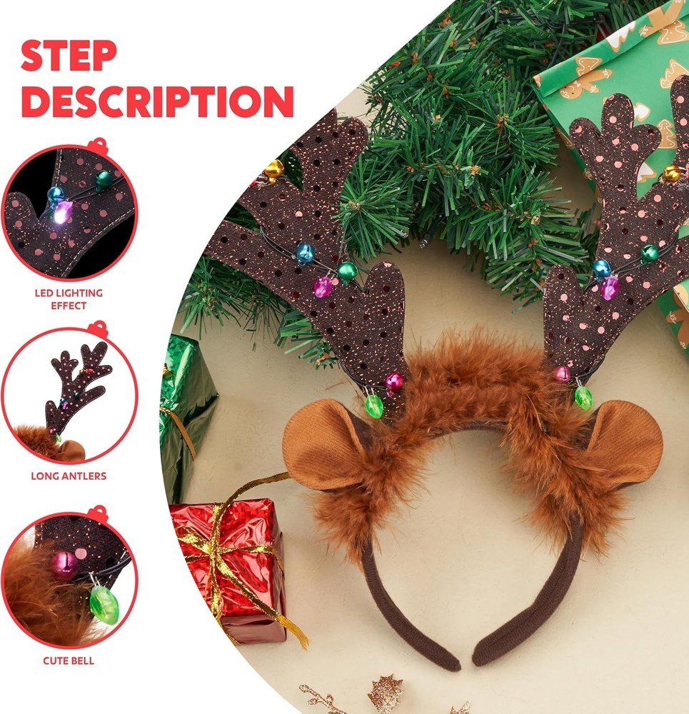 Complete Festive Set: Our package include 2PCS Light Up Christmas reindeer headband Unique Design:These Xmas reindeer headbands are pretty and lovely. The Christmas antler headband features long antlers with led light design,Featuring the popular reindeer antlers,our Xmas headbands would be loved by your little ones. Plus, the led lights make it more shiningPerfect for Christmas Parties and Holiday Party favors Wide Application: The cute christmas reindeer headband is a great addition to all occasions,This Christmas accessory is a great costume accessory for Christmas and New Year party celebrations, holiday parties,and other winter holiday occasions. They can be used as decorations on many occasions, such as Christmas assembly,christmas tree party,dress up party, Holiday Party Favors, Holiday Family Celebration Party,Christmas Dress-up Accessories, Christmas Toys, Christmas Holiday Decorations Premium Quality:Non-toxic, non-BPA; will not cause skin irritation. Meet the US Safety Standard. Safety Test Approved EASY TO USE:Great for anyone that wants to spread Xmas holiday cheer! These Christmas reindeer headbands are great party supplies for this Christmas party, you can use them to match with your Christmas costume