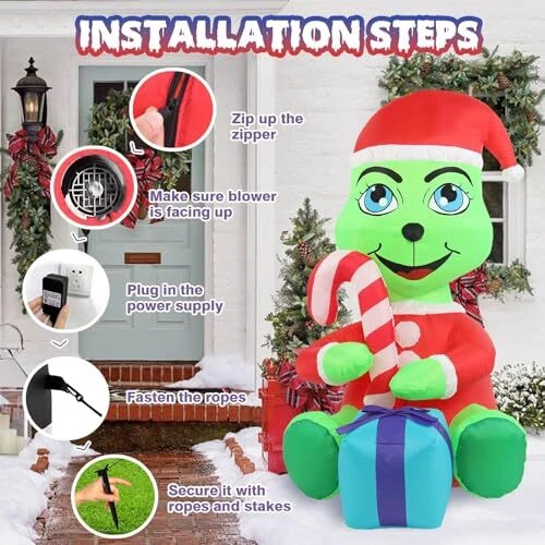 30 Days Return Policy Fast Delivery Trusted seller Christmas 4ft Green Ugly Monster Inflatables Outdoor Decorations with LED Lights Funny Xmas Blow ups for Holiday Outside Indoor Décor Party Yard Garden Lawn Product Description Unique Appearance Design:Cute green ugly monster sitting on the ground with smile. He was carrying a red and white walking stick in his arms, give a person a kind of amiable feeling. Built-in eye-catching super bright pure white Energy-Saving LED lights, It will attract guests and neighbors at night, you will definitely receive a lot of compliments. It also can be used as any other holiday decoration Durable & Waterproof Material: This 4ft tall green ugly monster inflatable Halloween yard decoration is made of excellent quality thickened polyester material with tight stitching. With its good waterproofing ability, fade resistance, lightweight and breath ability, it offers longevity, vibrant colors, and easy maintenance. Accompany you on Christmas year after year make our inflatable decorations is an excellent choice for anyone looking for a quality inflatable decor Safety & Reinforcement Design: This cute christmas outdoor decorations monster is equipped with 2 fasten ropes, 4 ground stakes, that make it secure easily in outdoor settings such as gardens and lawns. No need to worry that it will fly away with the wind. Our green giant monster blow up lawn decor also come with a built-in fan and a safe adapter plug, making it very safe for outdoor use, so that you can enjoy the joy of the vacation with more confidence Installation and Precautions:First put it on the flat ground, zip up the zipper .Then fix the inflatable decoration by the stakes and make sure it is secured on the ground. Finally, it will be perfectly presented in front of you. TIPS: do not put anything into the blower and inflatable. Please make sure the air blower is facing up when inflating. The air blower facing the ground will affect the effect of inflating Versatile Holiday Decor: Whether you want to enhance your yard, lawn, porch, or garden, restaurants, cafes, home, indoor and outdoor use, this Christmas blow up decoration will add a touch of fun to any space. Perfect for Halloween parties, Christmas night event, haunted houses, or simply delighting trick-or-treaters, this captivating display will cast a spell of Christmas magic like never before Shipping Returns Payment Shipping Shipping is FREE to all addresses other than APO/PO boxes in the lower 48 states. All our stock ships from US-based warehouses. Shipped via USPS or UPS (depending on location and package weight) Unless stated otherwise, all orders will ship within 24-72 hours of your payment being processed. Check our feedback to see the great reviews of FAST shipping we offer. Returns As our valued customer, we will do our best to make sure the product you receive arrives to you on time and as expected. If you are not satisfied with your purchase, please contact us within 30 days of receiving your order to process a return. Payment We currently accept payment via eBay managed payments only. Once payment is cleared, we will dispatch your shipment within 1-3 business days. Please refer to the "Shipping" tab for more information regarding shipping speed to your destination.