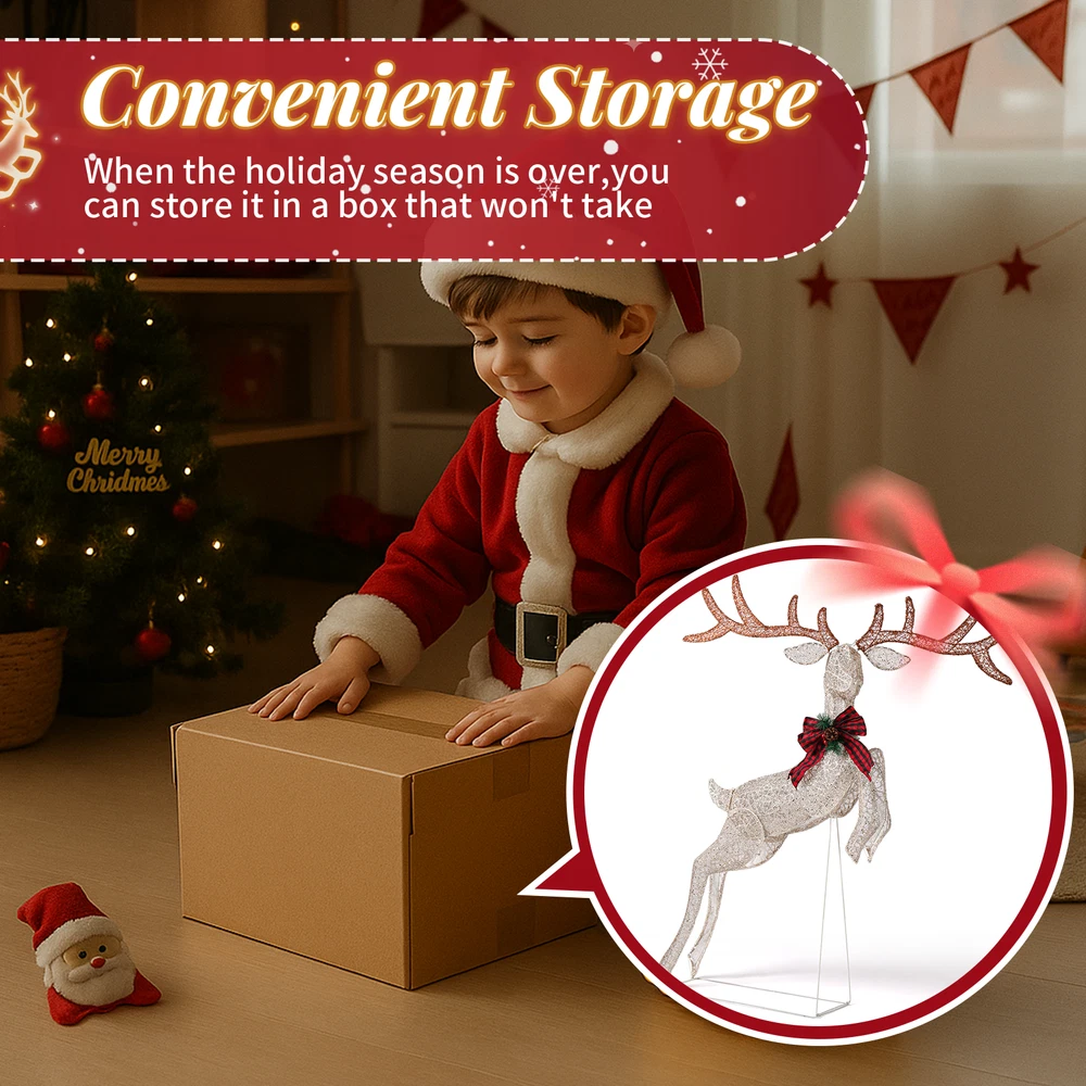 listing template VISIT OUR STORE SIGH UP FOR EMAIL Christmas 5FT Lighted Jumping Reindeer Decoration for In/Outdoor Lawn Decor 5FT Lighted Jumping Reindeer Christmas Decorations, Pre-lit Holiday Decor with 100 Warm White LED Lights for Xmas Outdoor Indoor Decor Lighted Holiday Displays Introd uctions: Create a warm and festive atmosphere with this enchanting set of Christmas lighted decorations. Perfect for both indoor and outdoor use, these glowing holiday displays will instantly brighten up your home, yard, or patio, making them a great addition to your seasonal décor. With durable construction and weather-resistant materials, these decorations are designed to withstand winter conditions, ensuring that they will bring holiday cheer year after year. Easy to set up and store, they provide a hassle-free way to enhance your holiday celebrations. Features: 1. Adorable Christmas Decoration: Featuring a vivid reindeer in jumping posture and decorated with a large bowknot, this decoration adds a playful and festive touch to any space. 2. Eye-catching LED Lights: Pre-lit with well-placed LED lights, this holiday display radiates a soft, warm white glow that illuminates your space beautifully at night. The lights bring your outdoor decor to life, making your home the highlight of the neighborhood during the holidays. 3. Easy Assembly & Storage: This collapsible Xmas decoration can be set up in minutes, allowing you to enjoy your festive display without hassle. Once the holiday season is over, it easily folds down into a compact size for convenient storage. 4. Weather-Resistant and Sturdy Build: Made from a durable, rustproof metal frame with sparkling fabric, this set is built to withstand wind, rain, and snow. 5. Perfect Holiday Decor for Indoor & Outdoor: Whether displayed in your living room, near your Christmas tree, on the porch, or in the yard, this lighted Christmas decoration adds a magical and cozy ambiance to any space. Its lightweight design makes it easy to move and position them wherever you want to spread holiday cheer. Specifications: 1. Number of Lights: 100 pcs 2. Light Color: Warm white 3. Voltage: 4.5V 4. Power: 3.6W 5. Overall Dimensions: (38.6 x 34.6 x 58.3) in / (98 x 88 x 148) cm Package Includes: 1 x Christmas Lighted Decoration Shipping Policy 1. Ship worldwide from New Jersey by reliable shipping companies -- USPS, UPS, FEDEX, DHL, etc., and only to VERIFIED PAYPAL ADDRESS. Transport Delivery ETA. Package handling only takes 1 business day at our warehouse, so please make sure entering correct payment and shipping information before checking out. Once your payment is completed, we are not going to accept any more changes to your order. 2. International Buyers – Please Note: a. Import duties, taxes and charges are not included in the item price or shipping charges. These charges are the buyer's responsibility. b. Please check with your country's customs office to determine what these additional costs will be prior to bidding/buying. 3. Please check your shipping address carefully before checkout, it can't be changed if order completed. 4. Orders placed on weekend will be shipped within 2 days.Notification of shipment with tracking number will be sent to buyers. 5. Standard shipping: 2-7 business days Expedited Shipping: 2-3 business days One-day Shipping: 1 business day International shipping: Varies 6.Ship within 1 business day once payment completed. Notification of shipment with tracking No. will be sent to buyer. 7.We offer discounts for combine shipping. Please contact us first if you need combine shipping, and an invoice with discount will be sent to you. 8.Please allow 5 business days for delivery to US destinations on any eBay orders and 14 business days for delivery to any International destinations. We highly recommend our buyer choose priority/expess mail for international delivery which is much more stable. Return Policies 1. Refunds given only if item DOA and cannot be replaced via PAYPAL . If so, Please contact us with 5 days since you receive the item and and return to us within 30 days from the delivery date for exchange or refund. 2. If you need return, please contact our customer service representative, let us know the detailed problem and send us some pictures for confirmation. Payment Payment should be sent within 8(EIGHT) days of auction closing. Feedback If you are dissatisfied for any reason, please do not be quick to leave negative/neutral feedback. We work hard to make sure EVERY CUSTOMER 100% SATISFIED and resolve any problem for you. Work Time Work Time: Monday to Saturday About Us | Newsletter| Feedback| Contact Us Copyright © 2022 LikeDeal. All rights reserved. 无标题文档 Christmas 5FT Lighted Jumping Reindeer Decoration for In/Outdoor Lawn Decor 5FT Lighted Jumping Reindeer Christmas Decorations, Pre-lit Holiday Decor with 100 Warm White LED Lights for Xmas Outdoor Indoor Decor Lighted Holiday Displays Introd uctions: Create a warm and festive atmosphere with this enchanting set of Christmas lighted decorations. Perfect for both indoor and outdoor use, these glowing holiday displays will instantly brighten up your home, yard, or patio, making them a great addition to your seasonal décor. With durable construction and weather-resistant materials, these decorations are designed to withstand winter conditions, ensuring that they will bring holiday cheer year after year. Easy to set up and store, they provide a hassle-free way to enhance your holiday celebrations. Features: 1. Adorable Christmas Decoration: Featuring a vivid reindeer in jumping posture and decorated with a large bowknot, this decoration adds a playful and festive touch to any space. 2. Eye-catching LED Lights: Pre-lit with well-placed LED lights, this holiday display radiates a soft, warm white glow that illuminates your space beautifully at night. The lights bring your outdoor decor to life, making your home the highlight of the neighborhood during the holidays. 3. Ea