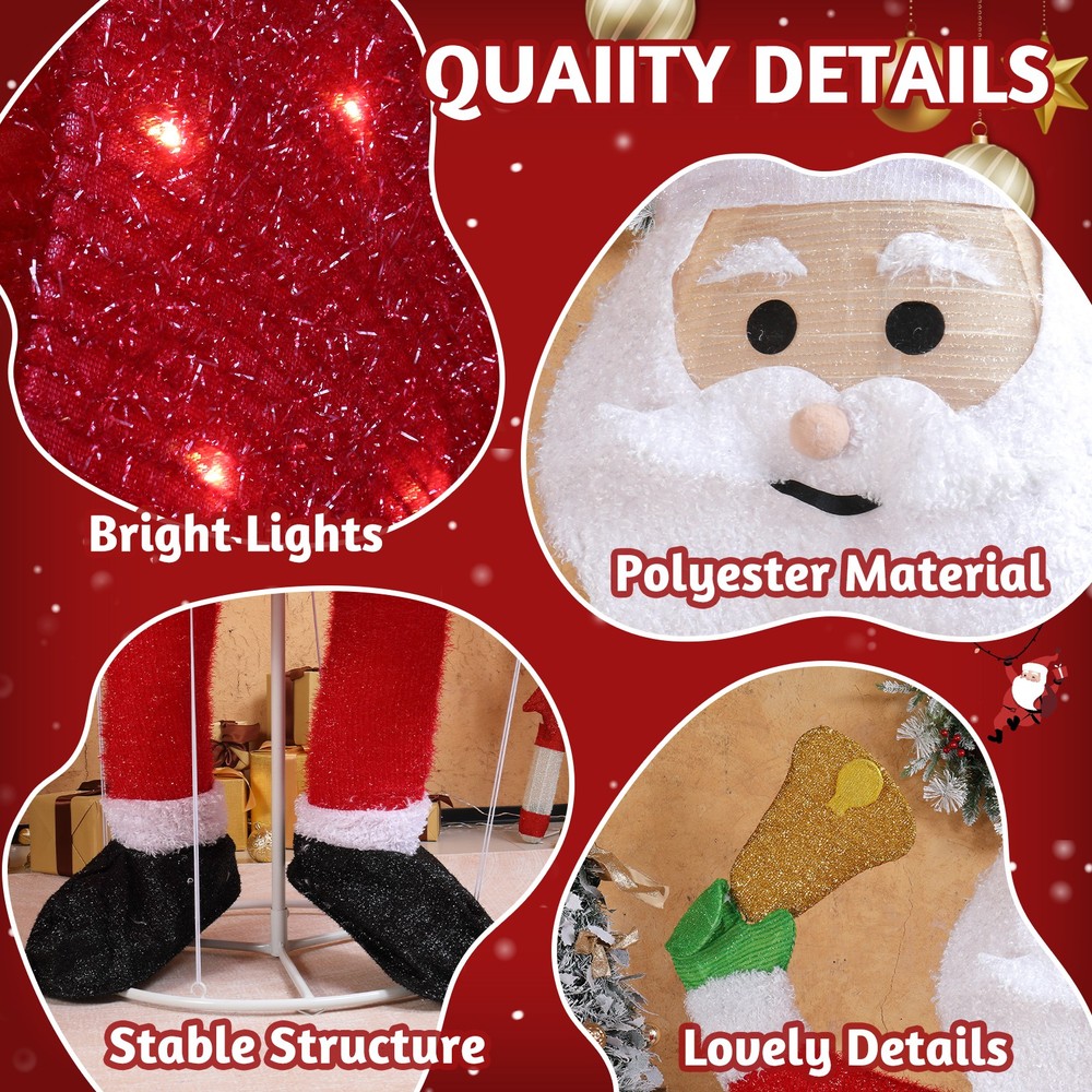 listing template VISIT OUR STORE SIGH UP FOR EMAIL Christmas 6 FT Santa Decoration with LED Lights for Xmas Outdoor Holiday Display 6FT Lighted Santa Christmas Yard Decorations, Pre-lit Pull Up Santa Waving Hand with 180 LED Warm White Lights and Ropes Stakes for Xmas Outdoor Holiday Indoor Decor Lighted Holiday Displays Intro ductions: Add a touch of festive charm to your home with this 6FT Lighted Santa Christmas Decoration. With a cute, smiley face and waving hand, Santa is ready to spread holiday cheer while holding a small Christmas tree in the other. Crafted from plush, sparkly fabric that shimmers under the lights, this decoration will make Santa the star of your holiday display. Whether placed indoors or outdoors, this cheerful Santa adds warmth and joy, making it the perfect centerpiece for your Christmas décor. Effortless to set up and built to withstand winter weather, it's a delightful addition to any festive scene. Features: 1. Charming Christmas Centerpiece: This 6-foot Santa, waving with one hand and holding a small Christmas tree in the other, is the perfect focal point for your festive display. The shimmering fabric gives it a magical, sparkling finish that brings joy to the holiday season. 2. Warm, Inviting LED Glow: Pre-lit with 180 well-placed LED lights, this delightful Santa radiates a soft, warm white glow that illuminates your space beautifully at night. The lights bring your outdoor decor to life, making your home the highlight of the neighborhood during the holidays. 3. Easy Assembly and Storage: With a convenient pull-up design, this lighted santa can be set up in minutes without hassle. When the holiday season is over, it collapses into a compact size for easy storage, saving space and easy to use again next year. 4. Weather-Resistant and Sturdy Build: Made from a durable, rustproof metal frame with waterproof fabric, the santa is built to withstand wind, rain, and snow. The included ground stakes provide extra stability, ensuring your decorations stay secure in winter weather. 5. Perfect Holiday Decor for Indoor & Outdoor: Place this pre-lit santa in your living room, on your porch, by the fireplace, or in your garden to create a heartwarming holiday display. Its lightweight design makes it easy to move and position them wherever you want to spread holiday cheer. Specifications: 1. Dimensions: (32.3 x 24.4 x 70.9) in / (82 x 62 x 180) cm 2. Number of Lights: 180pcs 3. Light Color: Warm White Package Includes: 1 x Lighted Santa 1 x Set of Ground Stakes Shipping Policy 1. Ship worldwide from New Jersey by reliable shipping companies -- USPS, UPS, FEDEX, DHL, etc., and only to VERIFIED PAYPAL ADDRESS. Transport Delivery ETA. Package handling only takes 1 business day at our warehouse, so please make sure entering correct payment and shipping information before checking out. Once your payment is completed, we are not going to accept any more changes to your order. 2. International Buyers – Please Note: a. Import duties, taxes and charges are not included in the item price or shipping charges. These charges are the buyer's responsibility. b. Please check with your country's customs office to determine what these additional costs will be prior to bidding/buying. 3. Please check your shipping address carefully before checkout, it can't be changed if order completed. 4. Orders placed on weekend will be shipped within 2 days.Notification of shipment with tracking number will be sent to buyers. 5. Standard shipping: 2-7 business days Expedited Shipping: 2-3 business days One-day Shipping: 1 business day International shipping: Varies 6.Ship within 1 business day once payment completed. Notification of shipment with tracking No. will be sent to buyer. 7.We offer discounts for combine shipping. Please contact us first if you need combine shipping, and an invoice with discount will be sent to you. 8.Please allow 5 business days for delivery to US destinations on any eBay orders and 14 business days for delivery to any International destinations. We highly recommend our buyer choose priority/expess mail for international delivery which is much more stable. Return Policies 1. Refunds given only if item DOA and cannot be replaced via PAYPAL . If so, Please contact us with 5 days since you receive the item and and return to us within 30 days from the delivery date for exchange or refund. 2. If you need return, please contact our customer service representative, let us know the detailed problem and send us some pictures for confirmation. Payment Payment should be sent within 8(EIGHT) days of auction closing. Feedback If you are dissatisfied for any reason, please do not be quick to leave negative/neutral feedback. We work hard to make sure EVERY CUSTOMER 100% SATISFIED and resolve any problem for you. Work Time Work Time: Monday to Saturday About Us | Newsletter| Feedback| Contact Us Copyright © 2022 LikeDeal. All rights reserved. 无标题文档 Christmas 6 FT Santa Decoration with LED Lights for Xmas Outdoor Holiday Display 6FT Lighted Santa Christmas Yard Decorations, Pre-lit Pull Up Santa Waving Hand with 180 LED Warm White Lights and Ropes Stakes for Xmas Outdoor Holiday Indoor Decor Lighted Holiday Displays Intro ductions: Add a touch of festive charm to your home with this 6FT Lighted Santa Christmas Decoration. With a cute, smiley face and waving hand, Santa is ready to spread holiday cheer while holding a small Christmas tree in the other. Crafted from plush, sparkly fabric that shimmers under the lights, this decoration will make Santa the star of your holiday display. Whether placed indoors or outdoors, this cheerful Santa adds warmth and joy, making it the perfect centerpiece for your Christmas décor. Effortless to set up and built to withstand winter weather, it's a delightful addition to any festive scene. Features: 1. Charming Christmas Centerpiece: This 6-foot Santa, waving with one hand and holding a small Christmas tree in the other, is the perfect focal