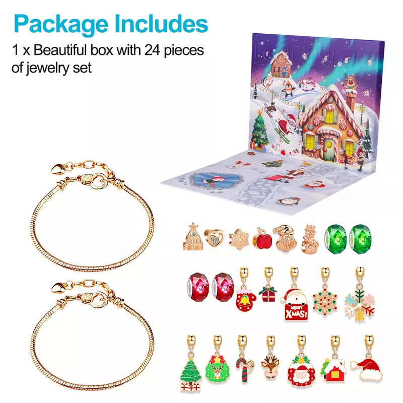 Product Feature Christmas Bracelet Calendar: You will receive a Christmas advent calendar with 22 Charm Beads and 2 Bracelet Chains to make 2 Christmas bracelets; The adorable charms are all the theme of Christmas like Santa Claus, Christmas tree, Santa hat, gift box, stocking, snowflake, wreath, candy cane, etc. exquisite and delicate. Premium Material: Christmas charm beads and pendant are well made of non-toxic plastic and environmental alloy, safe, not easy to fade; The length of the bracelet is 6.29", ideal for girls arms. Countdown to Christmas Gift: The Christmas jewelry bracelet making kit comes in a Christmas countdown box with small “window” from December 1st to Christmas Eve, this will keep your little ones excited and looking forward to open each of the surprises day by day. A gift each day till Christmas. How fun to countdown Christmas. Christmas Crafts: The Christmas jewelry advent calendar provide your kids a daily arts & crafts activity for each day of the 24 days before Christmas, this would be the most attractive feature for girls, they’re freely to make their own Xmas bracelets at their preferences and wear them on Christmas day. Easy to DIY Bracelets: The bracelet chain features a barrel charm clasp and innovative threading system, easy to create your own bracelets and change every time you want. Product Specification Type:DIY Christmas Jewelry Blind Box Color:Multi-colors Material:Alloy + resin + copper Applicable Holidays:Christmas Box Size :20x17cm Bracelet Length:16+5cm Quantity of bracelets:2 Quantity of bracelet accessories:22 Package Included 24 pieces of jewelry set On Dec 5, 2024 at 13:55:44 PST, seller added the following information: