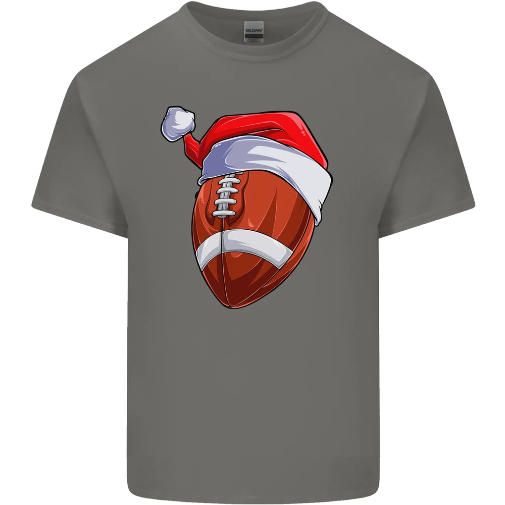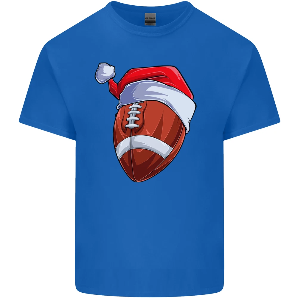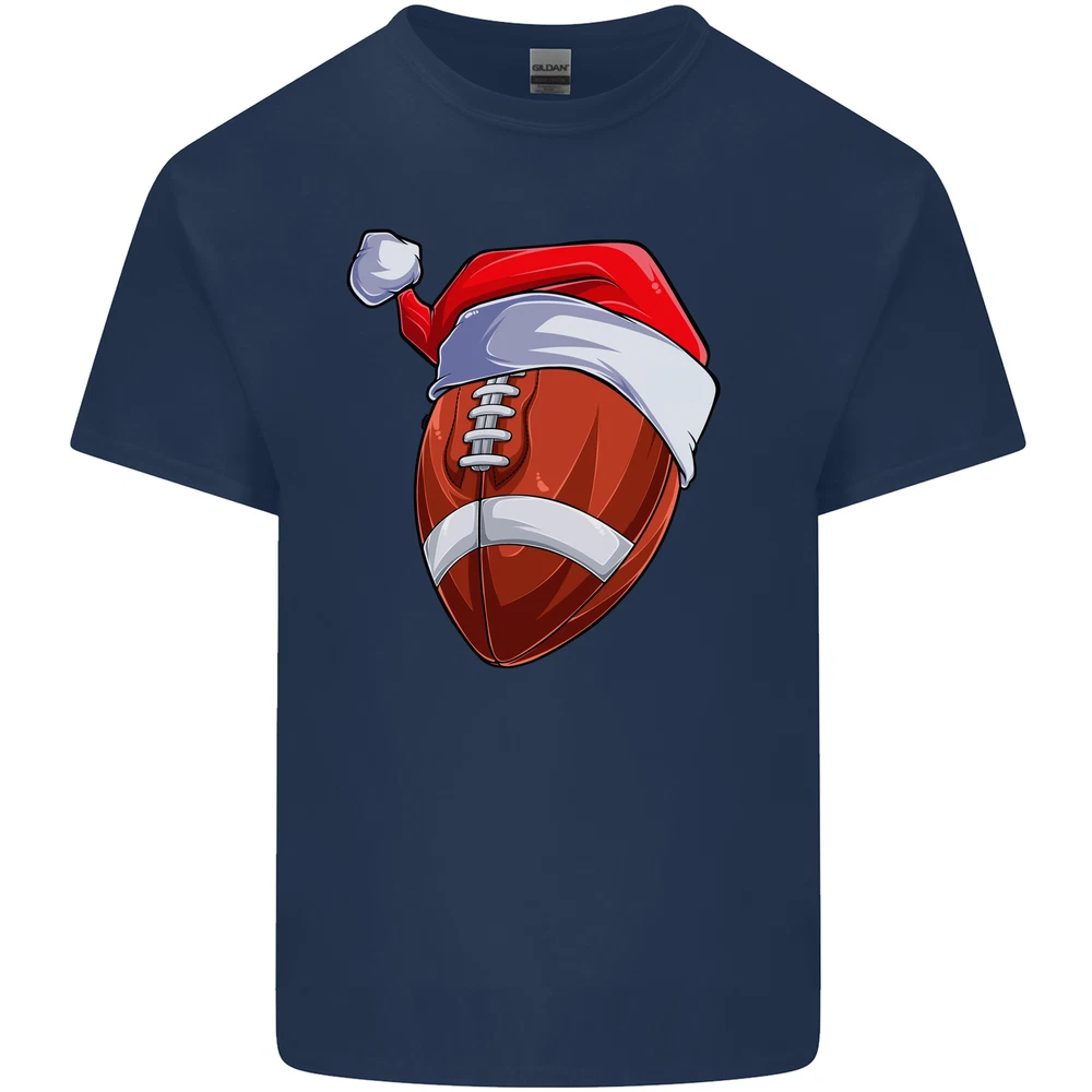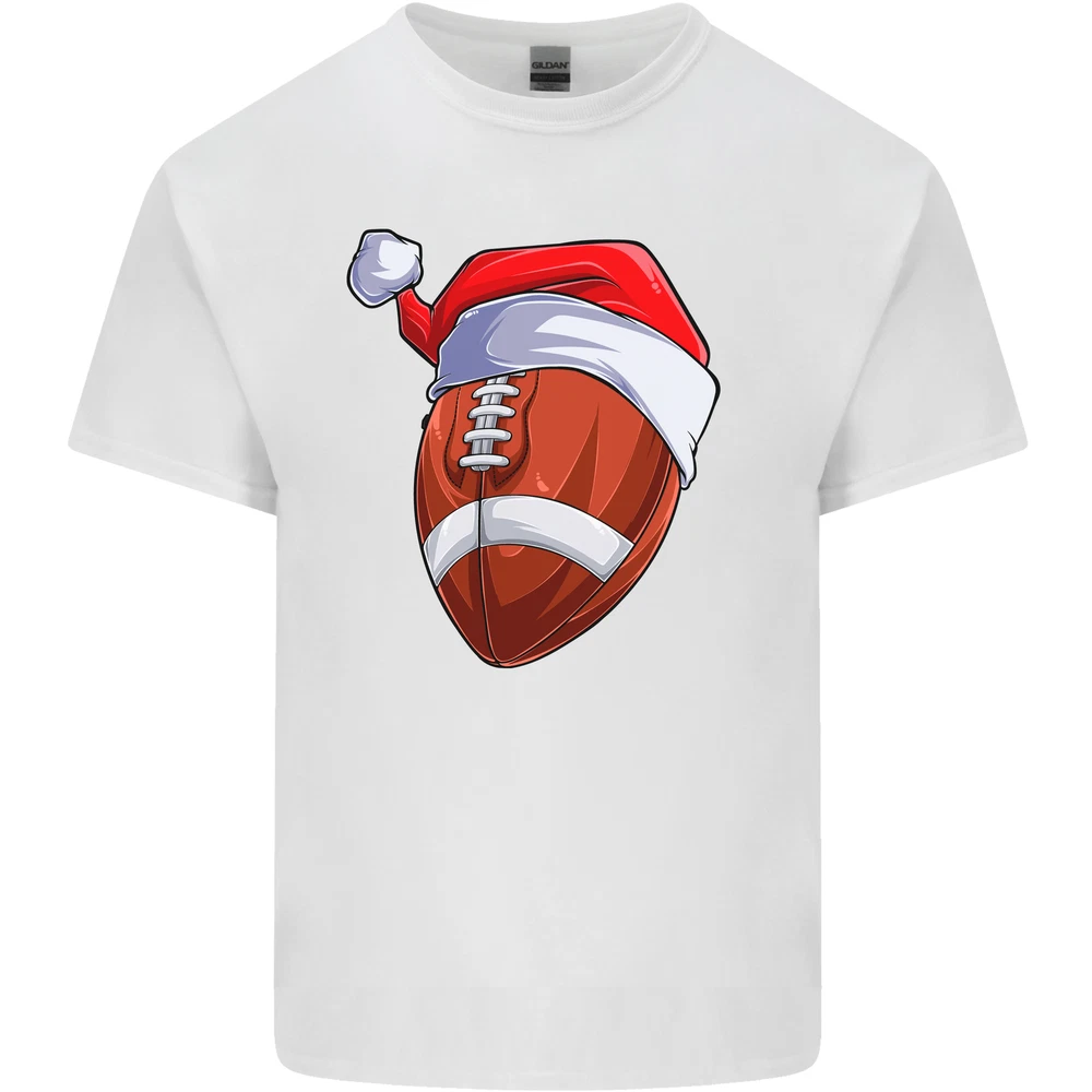 Christmas American Football Santa Hat Xmas Mens Cotton T-Shirt Tee Top