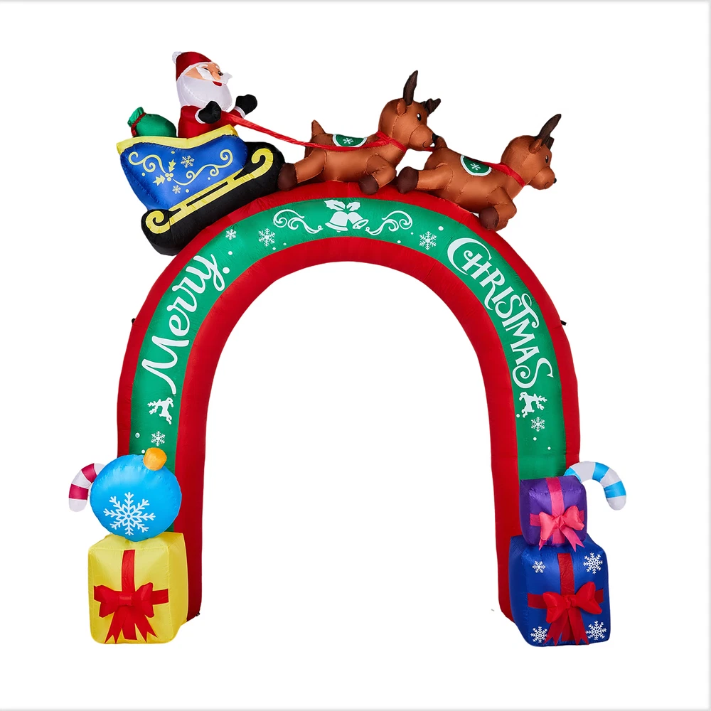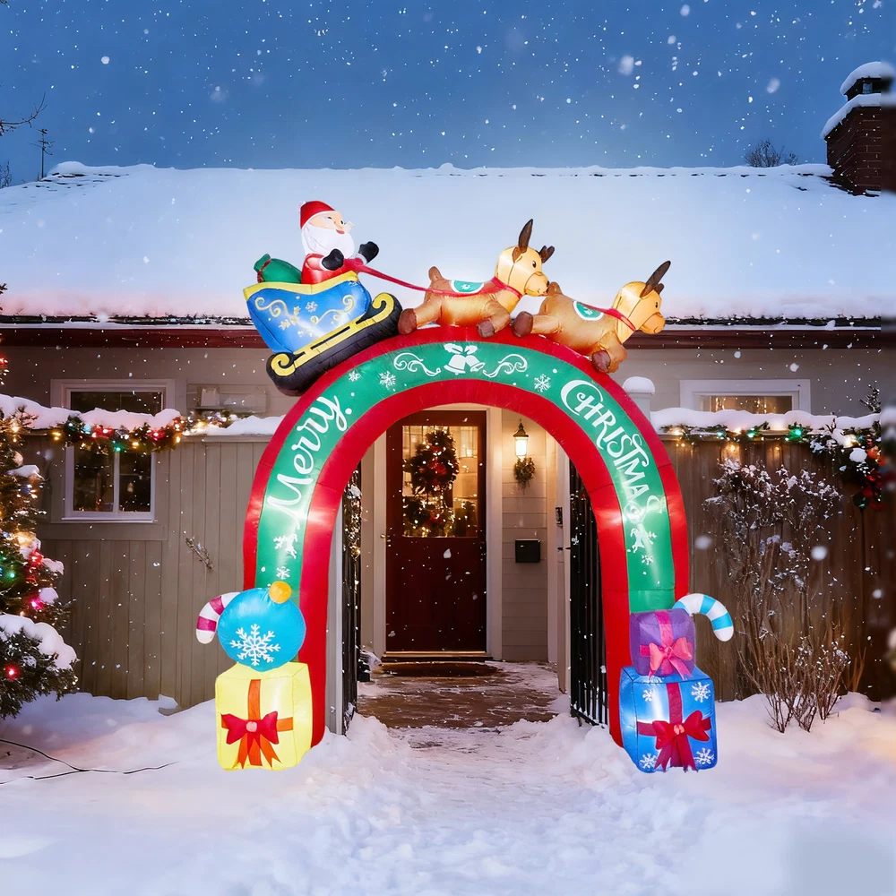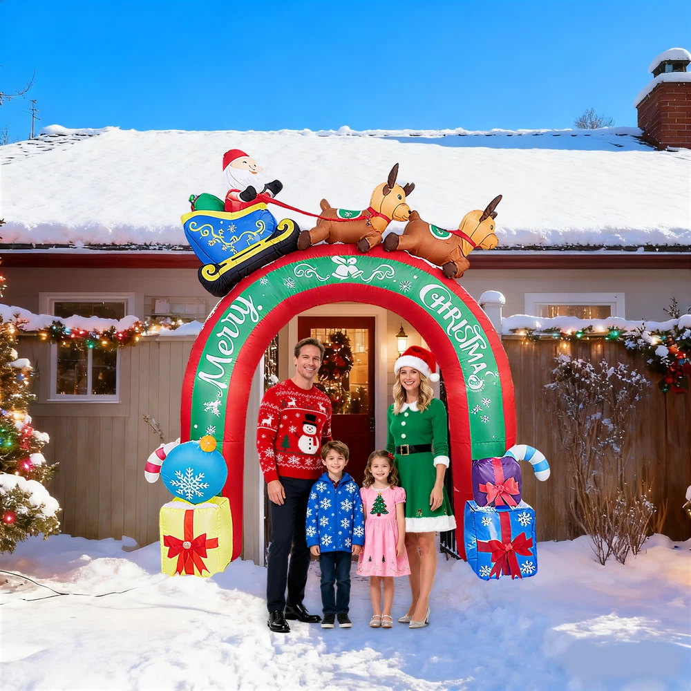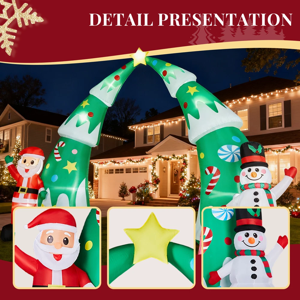listing template VISIT OUR STORE SIGH UP FOR EMAIL Christmas Arch Inflatable 10 / 15 FT Decorations for Outdoor Holiday Party 15FT Lighted Christmas Inflatable Archway, Inflatable Christmas Tree Arch with Santa and Snowman, Blow Up Yard Decorations with Built-in LED Lights for Holiday Party Front Yard Lawn Garden Decor Introd uctions: Create a magical holiday atmosphere with this eye-catching Christmas inflatable decoration. Perfect for adding festive charm to your yard, garden, or indoor space, this inflatable is sure to impress guests and passersby alike. Designed to capture the spirit of the season, it brings joy and warmth to any holiday celebration, making it an essential part of your Christmas décor. Easy to set up and built to last, this decoration will be a cherished addition to your holiday traditions for years to come. Features: 1. Eye-catching Design: Transform your yard into a winter wonderland with this delightful inflatable archway. This massive arch decoration is perfect for creating a welcoming holiday atmosphere for guests and passersby alike. Featuring two connected christmas trees in the shape of an arch and a cute Santa and snowman on both sides to say hello, this archway will be the star of your indoor or outdoor display and a fantastic photo backdrop for capturing holiday memories. 2. Bright LED Lights: With built-in LEDs, this inflatable archway will brighten up your holiday nights and make your yard truly stand out. These soft, glowing lights will create a warm and festive ambiance and illuminate your yard. 3. Quick and Easy Setup: Simply zip up the inflatable and plug it into any standard power outlet; the built-in blower will automatically inflate the archway in seconds. When the festivities are over, deflate it just as easily, fold it up, and store it compactly until next year. Includes ground stakes and securing ropes to keep it stable. 4. Durable and Weather-Resistant: Crafted from high-quality, waterproof polyester, this inflatable archway is designed to last through many holiday seasons. The material resists tears and fading, while reinforced stitching prevents leaks, ensuring that your inflatable remains in perfect condition year after year. 5. Versatile Holiday Decoration: Whether placed in the front yard, at a store entrance, or as part of an indoor display, this large Christmas blow up decoration will captivate everyone's attention, ensuring your decorations are the talk of the season. Specifications: 1. Material: Polyester, Plastic 2. Dimensions: (176.4 x 44.5 x 114.2) in / (448 x 113 x 290) cm 3. Number of LEDs: 13 4. Light Color: White Package Includes: 1 x Christmas Inflatable Decoration with Adapter and Built-in Fan 2 x Securing Ropes 6 x Ground Stakes 10FT Lighted Christmas Inflatable Archway, Inflatable Arch with Reindeer Pulling Santa's Sleigh, Blow Up Yard Decorations with Built-in LED Lights for Holiday Party Front Yard Lawn Garden Decor Introductions: Create a magical holiday atmosphere with this eye-catching Christmas inflatable decoration. Perfect for adding festive charm to your yard, garden, or indoor space, this inflatable is sure to impress guests and passersby alike. Designed to capture the spirit of the season, it brings joy and warmth to any holiday celebration, making it an essential part of your Christmas décor. Easy to set up and built to last, this decoration will be a cherished addition to your holiday traditions for years to come. Features: 1. Eye-catching Design: Transform your yard into a winter wonderland with this delightful inflatable archway. This massive arch decoration is perfect for creating a welcoming holiday atmosphere for guests and passersby alike. Featuring a cheerful arch with two reindeer pulling a santa's sleigh on the top and gift boxes on both sides, this archway will be the star of your indoor or outdoor display and a fantastic photo backdrop for capturing holiday memories. 2. Bright LED Lights: With built-in LEDs, this inflatable archway will brighten up your holiday nights and make your yard truly stand out. These soft, glowing lights will create a warm and festive ambiance and illuminate your yard. 3. Quick and Easy Setup: Simply zip up the inflatable and plug it into any standard power outlet; the built-in blower will automatically inflate the archway in seconds. When the festivities are over, deflate it just as easily, fold it up, and store it compactly until next year. Includes ground stakes and securing ropes to keep it stable. 4. Durable and Weather-Resistant: Crafted from high-quality, waterproof polyester, this inflatable archway is designed to last through many holiday seasons. The material resists tears and fading, while reinforced stitching prevents leaks, ensuring that your inflatable remains in perfect condition year after year. 5. Versatile Holiday Decoration: Whether placed in the front yard, at a store entrance, or as part of an indoor display, this large Christmas blow up decoration will captivate everyone's attention, ensuring your decorations are the talk of the season. Specifications: 1. Material: Polyester, Plastic 2. Dimensions: (106.3 x 35.4 x 118.1) in / (270 x 90 x 300) cm 3. Number of LEDs: 9 4. Light Color: Warm White Package Includes: 1 x Christmas Inflatable Decoration with Adapter and Built-in Fan 2 x Securing Ropes 6 x Ground Stakes Shipping Policy 1. Ship worldwide from New Jersey by reliable shipping companies -- USPS, UPS, FEDEX, DHL, etc., and only to VERIFIED PAYPAL ADDRESS. Transport Delivery ETA. Package handling only takes 1 business day at our warehouse, so please make sure entering correct payment and shipping information before checking out. Once your payment is completed, we are not going to accept any more changes to your order. 2. International Buyers – Please Note: a. Import duties, taxes and charges are not included in the item price or shipping charges. These charges are the buyer's responsibility. b. Please check with your country's customs office to de