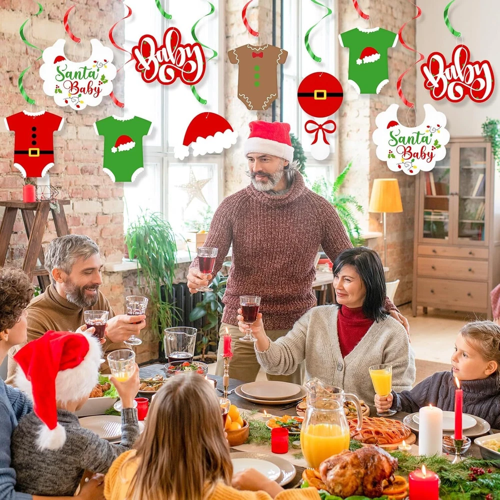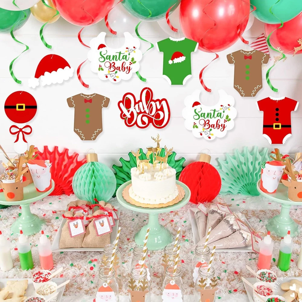 Christmas Baby Shower Decorations,Santa Theme Party Hanging Red White
