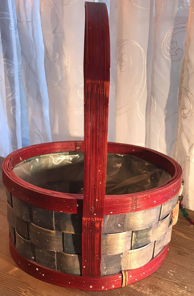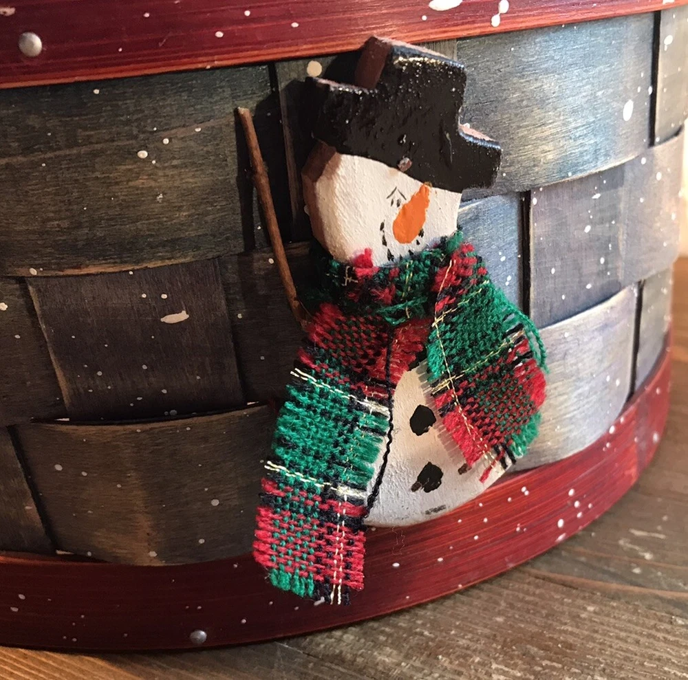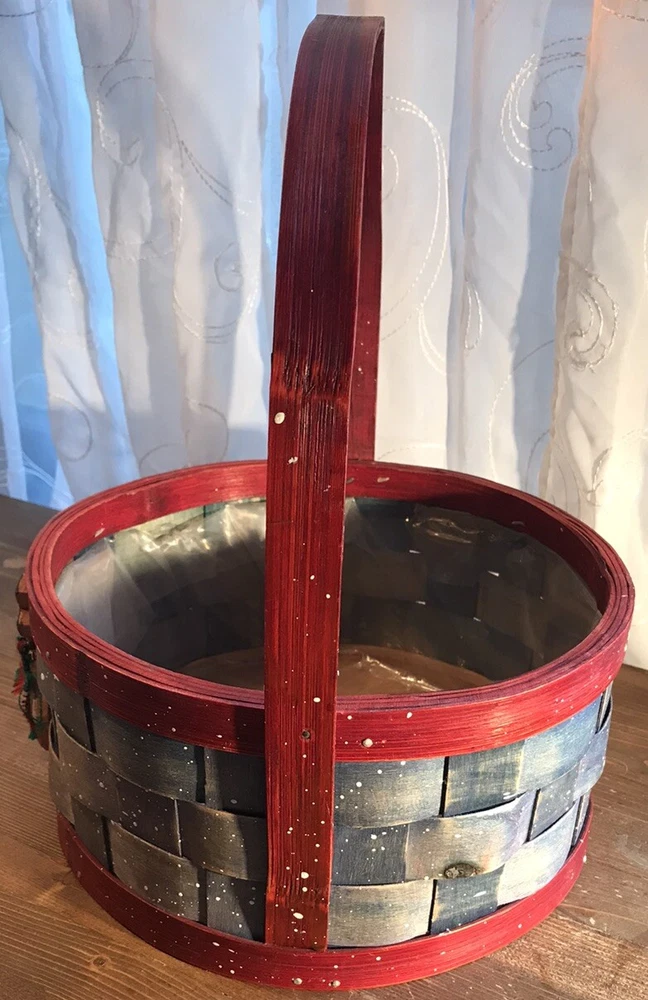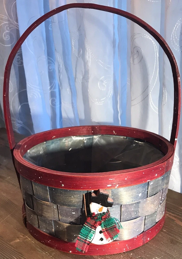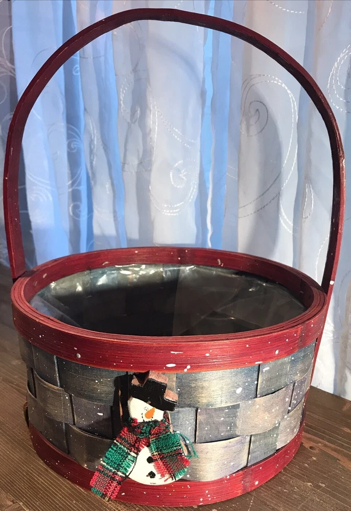 This festive Christmas basket is the perfect addition to your holiday decor. Featuring a cute snowman design, this basket is made of durable wood and lined with plastic for easy cleaning. Measuring 12 inches in height and 9.5 inches in width, it's the ideal size for displaying on a tabletop or as a centerpiece. The basket is brought to you by Flowers Inc Balloons and is sure to add a festive touch to any room. Its multicolor design and holiday theme make it a great choice for Christmas decorations. Whether you're using it to display gifts or as a decorative piece, this Christmas basket is sure to be a hit. Measurements approximately: 12” tall with handle 4-5/8” tall without handle 9-1/2” diameter without handle 10” wide with handle