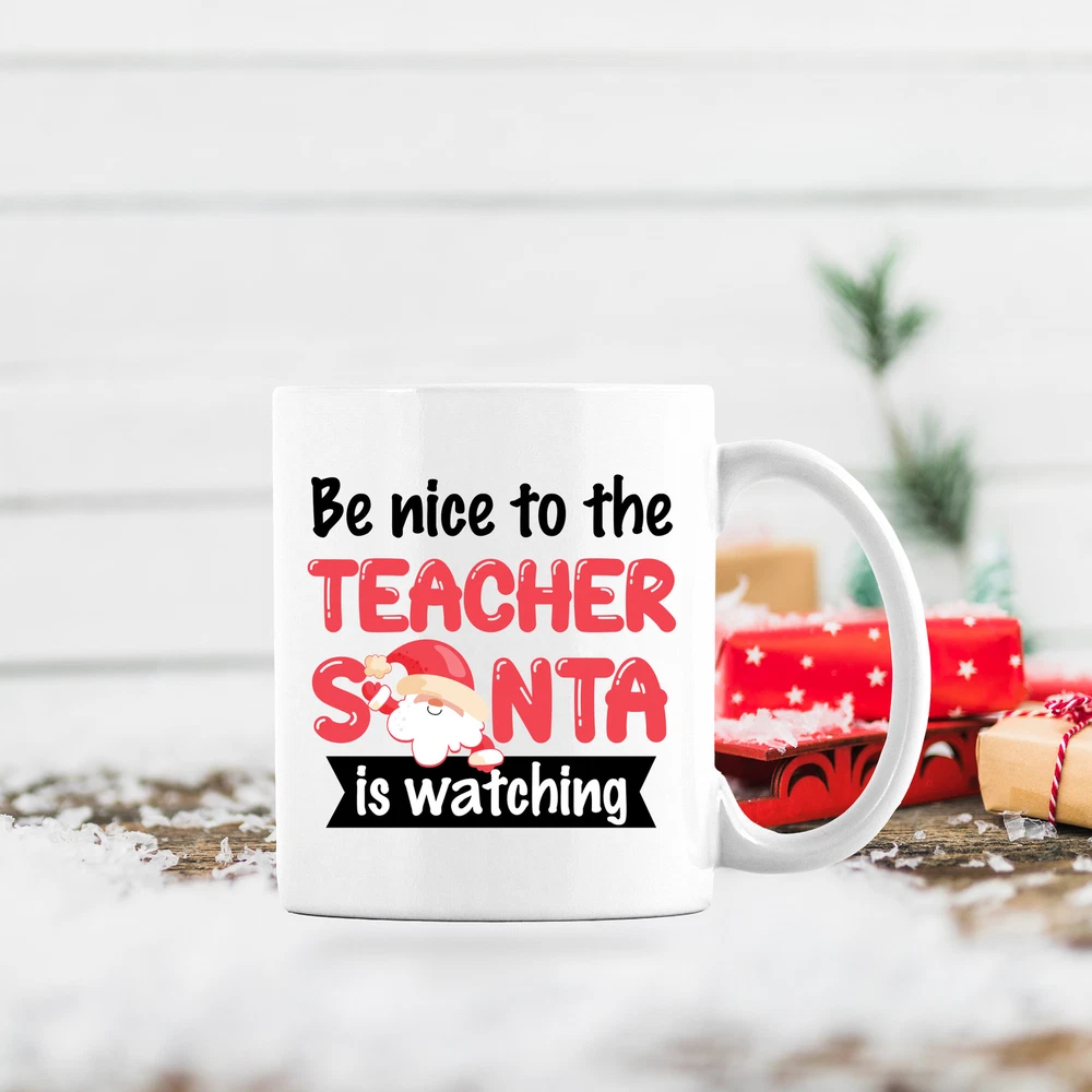 Christmas Be Nice To The Teacher Christmas Gifts For Teacher Teacher Christmas Product Details.. This high quality 11oz. ceramic white mug has a premium hard coat that provides crisp and vibrant color reproduction sure to last for years. Perfect for all hot & cold beverages. The highest quality printing possible is used. It will never fade no matter how many times you wash it. Material: 100% Ceramic. Print both sides. Dishwasher and Microwave Safe. High Gloss + Premium White Finish. Printed in the U.S.A. Personalized & Custom. We support personalized and custom mug to add custom, when placing an order, you can add notes to the "order note" in shipping address section. Also you can contact us directly via message. Shipping Info. Ready to ship in 1 to 2 business days, All products are made-to-order and proudly printed in the United States. Shipped by USPS and DHL, You will receive your order in 5-7 days. Replace & Refund. All products are defective during shipping broken, chipped will be replaced free of charge. You are not satisfied with the product, we will refund 100% money to you. If any other issues arise, please do not hesitate to message, we would be more than happy to assist you.