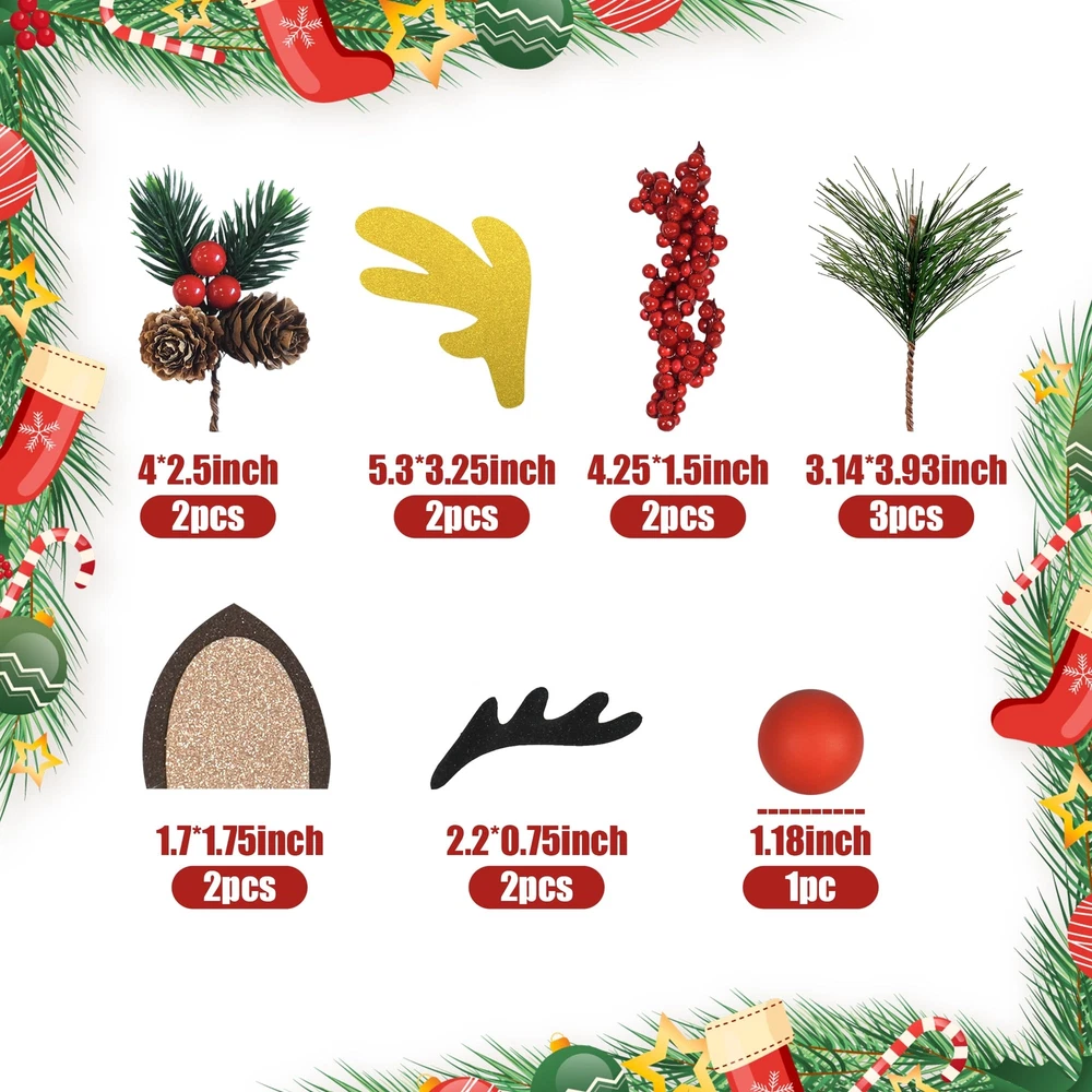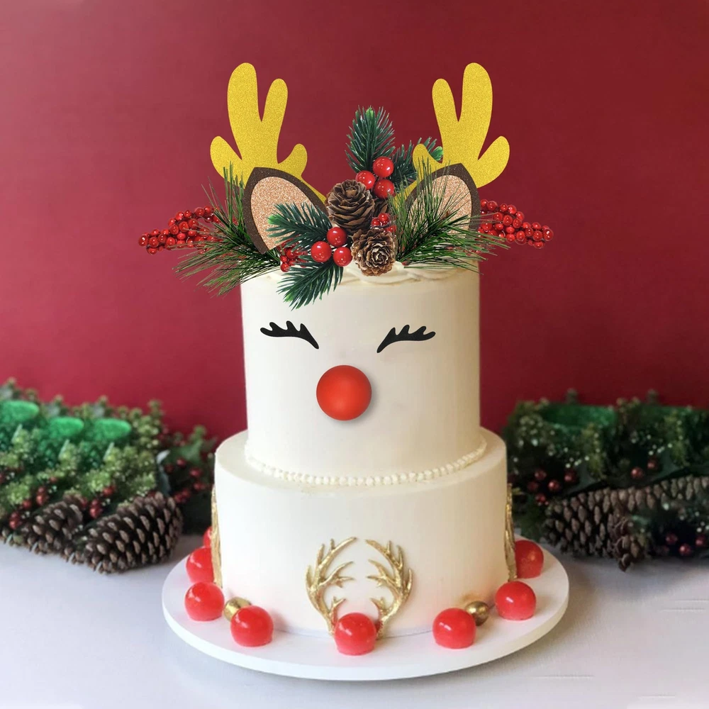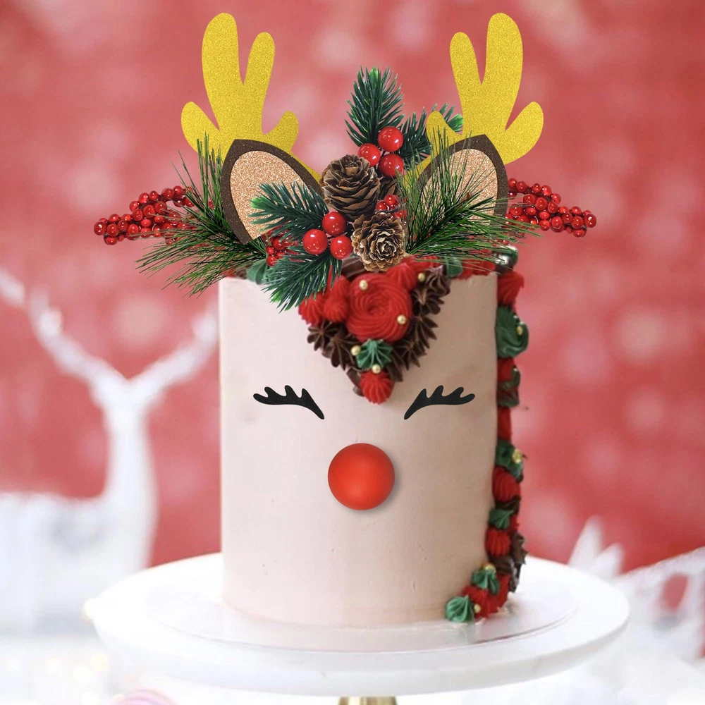 Package Included: You will receive 1 x set of Reindeer shape cake topper(6 pcs), 2 x artificial pine cones, 2 x artificial red Berries, 1 x ball, 3 x artificial pine needles Materials: Reindeer shape cake toppers are made of paper. Pine needles, pine cones and red berries are made of plastic. Ball is made of foam Unique design: This set of christmas cake decorations is specially designed for the coming Christmas. The combination of reindeer and pine needles adds a fun atmosphere to your party Convenient: These cake toppers are very convenient to use. You can decorate your cake quickly and don't need auxiliary tools. These cake toppers can be directly decorated on the cake. DIY your christmas party Wide use: Suitable for birthday parties, holiday theme celebrations, Christmas parties, New Year parties, etc. You can use these decorations to decorate cakes, desserts, cookies, donuts, etc
