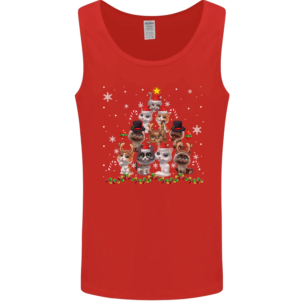 Christmas Cat Tree Funny Xmas Mens Vest Tank Top