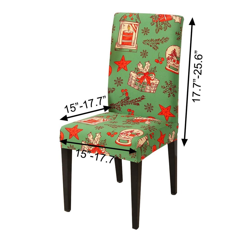 Specifications Color: As picture show. Material: Polyester. Suitable for Chair Size: Back Height:45-65CM (17.7-25.6 inch) Back Width: 38-45CM (15-17.7 inch) Seat Length: 38-45CM (15-17.7 inch) Seat Width: 38-45CM (15-17.7 inch) Machine washable. Package include: 4PCS home decor dining Room seat cover slipcovers. Performance Redecorate your dining room in style with this dining room chair cover. It comes in a rich color pallet that blends with most room decor, and it will add a stylish appearance to your dining room area. Transform your old dining room chairs into a sophisticated set using elegant slipcovers. Easily removed & suitable for indoor usage, not recommended for foldable chairs. Anti-dust and decorating your chair, stretch that recovers quickly, secure fit with sewn-in elastic hem. Perfectly suitable for kitchen, dining room, wedding, ceremony, banquet, dinner, celebration, hotel, living room, bedroom etc. Warm Tip Please measure your chair prior to purchasing to ensure the best fit.
