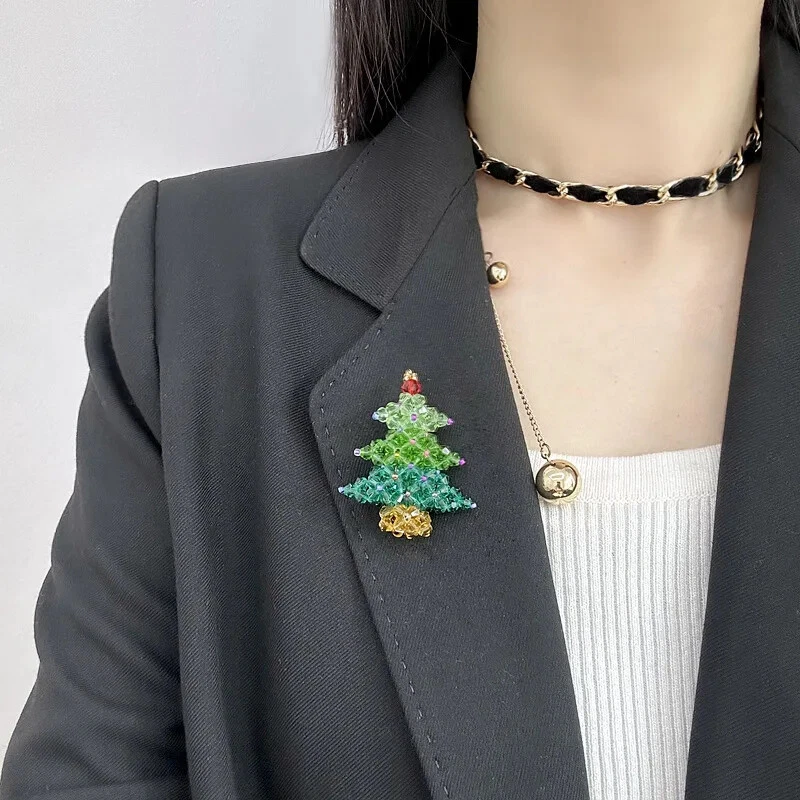 Christmas Collection Sparkling Crystal Colorful Christmas Tree Brooch Jewelry