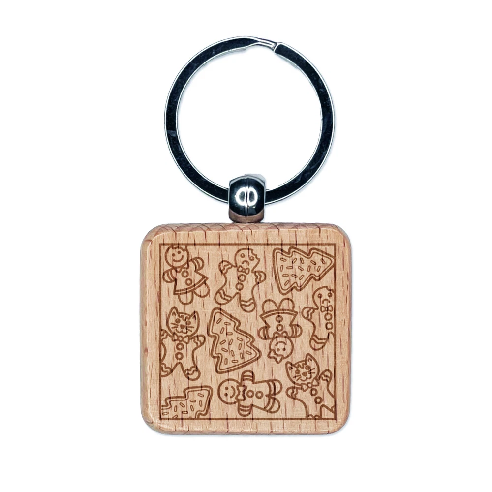 Christmas Cookie Pattern Engraved Wood Square Keychain Tag Charm