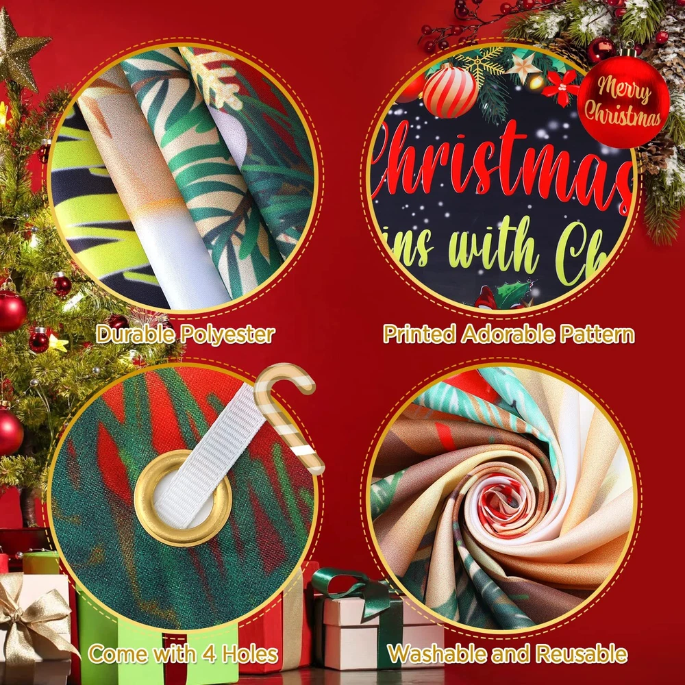 Specifications: Material: polyester Christmas porch banner size: approx. 185 x 90 cm/ 72.8x 35.4 inch Package includes: 1 x Christmas Door Cover Notes: 1. Please unfold it ahead of the party or lightly iron the banner if there are creases. 2. Manual measurement, please allow slight errors on size. 3. The color may exist slight difference due to different screen displays. Christmas Decorations for Home :You will receive 1 pieces of Christmas cross door cover, the Christmas begins with christ decortions backdrop is designed in green Christmas background and cross element, nice combination and attractive decorations for satisfying your outdoor Christmas decorations demands, easily stands out to catch everyone's eye. Suitable Size : The Christmas cross Christ decoration banner measures approx. 185 x 90 cm/ 72.8x 35.4 inch. The Christmas cross porch decoration banner is large enough to easily stands out to catch everyone's eye, easy to carry and store. Quality Material : The Green Christmas hanging banners are made of high-quality polyester fabric. It can be washed and ironed, weather resistant, reusable and durable. You can fold them up to easy to store for next years use after using. Easy to Hang : There are copper holes at 4 corners of the Christmas door banner. It comes with a 20 feet white string so it's easy to be installed to anywhere you want. Wide Application : These Christmas door cover is perfect for Xmas holiday winter birthday party front door decoration, front porch, doorways halls, fireplace, entryway, garden fences, decks and other places you want, fit for both indoor and outdoor, can create Christmas party atmosphere.