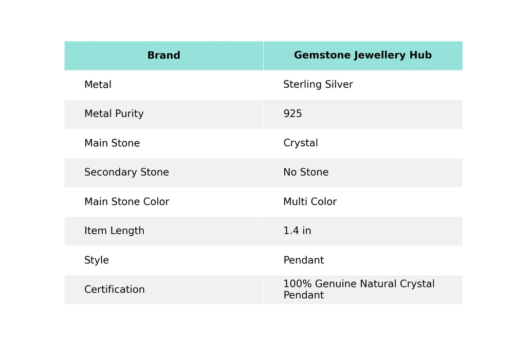 Welcome to Gemstone Treasure Hub Crystal Gemstone Pendant Multi Color Handmade 925 Sterling Silver Indian Jewelry Handmade Pendant, Sterling Silver Pendant, CRYSTAL Pendant, Handcrafted Pendant SKU : MP-3994 Gemstone : CRYSTAL Stone Shape : As Seen In Picture Metal Purity : 925 Sterling Silver Length : 1.4 Inches Width : Inches ___________________________________________________________________ Shipping Handling - Charge - Free ( Condition apply ) Handling Time - One business day . Delivery Time - 3 to 23 Days ( Various on destination ) Postage service - (A.) India Post - Below $100 order which takes 11 to 23 days . (B.) USPS, Fedex, DHL , Aramax- Order above $100 which takes 3 to 7 days . _________________________________________________________________ Returns - 1. We provide a 100% Money Back Guarantee, excluding shipping costs, within 30 days from the date of item receipt. 2. The item must not be altered or damaged in any way shape or form. 3. Upon receiving these items your payment will be refunded. 4. Kindly reach out to us via email to obtain return instructions prior to initiating the return of merchandise. 5. Please allow up to 1 business day for all returns to receivecredit. 6. Sizing does not affect the return policy. _________________________________________________________________ Payment - We accept PayPal for Payment , should made within three days once buying or winning done , in case of late information expected . _________________________________________________________________ FAQ's - Q.(A) ARE THE ITEMS YOU ARE SELLING BRAND NEW? We exclusively offer brand-new products, refraining from the sale of pre-owned jewelry. Our entire jewelry collection is composed of 100% natural, conflict-free pieces. We do not engage in the trade of imitation or lab-grown gemstones and diamonds. Q.(B) WHAT ARE YOUR BUSINESS HOURS? Our business hours are Monday to Friday, 10:00AM to 6:00PM, excluding holidays. ________________________________________________________________ Gemstone Treasure Hub is dedicated to providing customers with exceptional handmade jewelry crafted to the highest standards of quality. We operate as both connoisseurs and manufacturers of artisanal jewelry, possessing a profound expertise in the art of elevating gemstones to perfectly align with any aesthetic preference. We are pleased to offer you the opportunity to create your own jewelry collection, adorned with authentic and exquisite natural gemstones. Our team of highly skilled artisans painstakingly crafts each individual jewelry piece, ensuring the creation of products with a unique identity that feature genuine gemstones. The jewelry articles presented on our website accurately depict the precise pieces that you will receive.