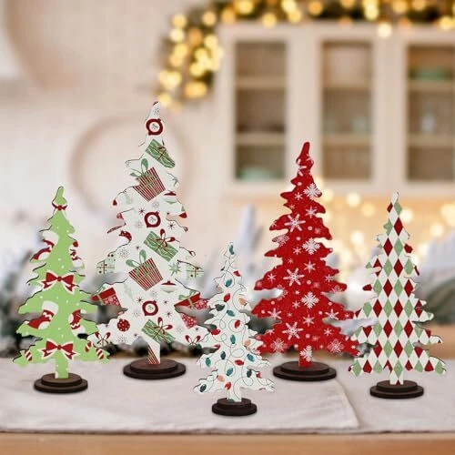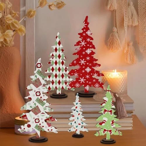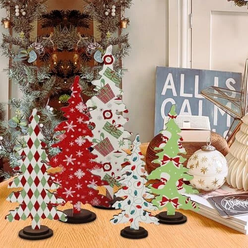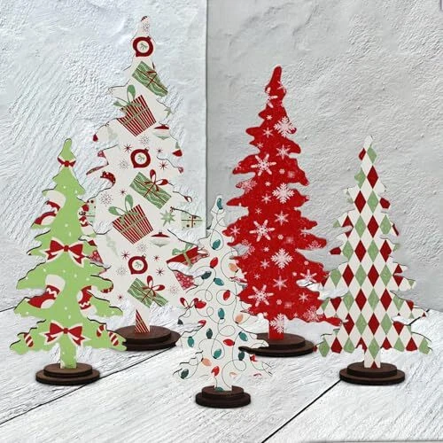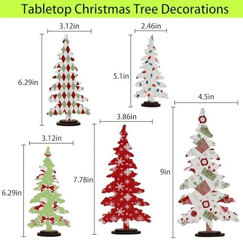 Christmas Decorations - 5PCS Wooden Christmas Tree Tabletop Decor Sign -