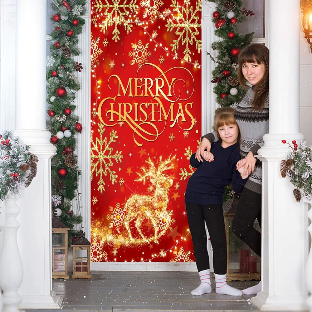 ???????Merry Christmas Decoration???You will get 1 piece large fabric of Merry Christmas door cover banner that measures about 90 x 185cm/35.4 x 72.8 inch with copper rings implanted on each corner. And each set will packaged with 1 pc 6m long rope for you to hang the Xmas backdrop banner up. ???????Exquisite & Funny Design???The design of the Christmas door banner is unique and vivid. The banner is printed with Xmas elements like Santa Claus, snowman, gift, snowflake, elk, candy, christmas tree, gingerbread man, bell and more, which are all classic elements about Christmas Eve, perfect for your festival theme and Christmas party. ???????Premium & Durable Material???The Merry Christmas backdrop banner is made of quality and durable polyester cloth fabric, bright colors, UV fade resistance, reusable, lightweight, double stitched all around the edge with nice craftsmanship, It can easy to carry and clean and be folded for convenient storage, and reused for next New Year Party. ???????Easy to Install & Hanging???Each Christmas door cover sign come with a grommet in each corner, you can connect 4 grommet holes with string and hang it anywhere you want. Such as wall, yard, proch???poles, trees, living room, fence or other places indoor outdoor. Please iron slightly or unfold it before the party if there are creases. ???????Wide Application???The exquisite Christmas poster banner decoration suitable for decorating Xmas themed parties, New Year house parties, indoor or outdoor occasions or other holiday parties, in addition to this, you can also use this xmas backdrop to take commemorative photos with your families and friends, it save your time and effort in decorating and create a festive mood for party quickly and easily. Merry Christmas door cover banner for house yard porch garden fence front door indoor outdoor Xmas party decorations supplies. Features: ???? Durable Material: This Christmas backdrop banner is made of durable fabric material, lightweight, washable and tear-resistant, can be applied for a long time and folded for convenient storage, also easy to carry. ???? Easy To Hang: The Christmas door cover banner comes with a grommet on each corner to hang on your front porch, door or entryway and prevent it from flying around in the wind. ???? Nice Christmas Decoration: This xmas banner background with many classical Christmas elements such as Santa Claus, snowman, gift, snowflake, elk, candy, christmas tree, gingerbread man, bell and ect.which can make your home full of cheerful and fun atmosphere, creating a strong Christmas festival atmosphere and can be widely used in different occasions, such as house, gardan, yard, restaurant, shopping mall etc. Specifications: ?????? Material: Polyester ?????? Size: 35.4 x 72.8 Inch/90 x 185cm ?????? Color: Red Package Includes: ???? 1 x Merry Christmas Banner ???? 1 x 6m Rope Warm Tips: ??? The color may have slight differences, due to different screens. ??? Please allow slight errors, due to manual measurement. ??? Please wash the banner with your hands and dry it in the ventilated place. ??? Folding shipments will produce creases inevitably, please iron the back side (not the image side) with low tempertrue to easily remove the wrinkle. ??? Winding risk may exist, please keep away from the kids.