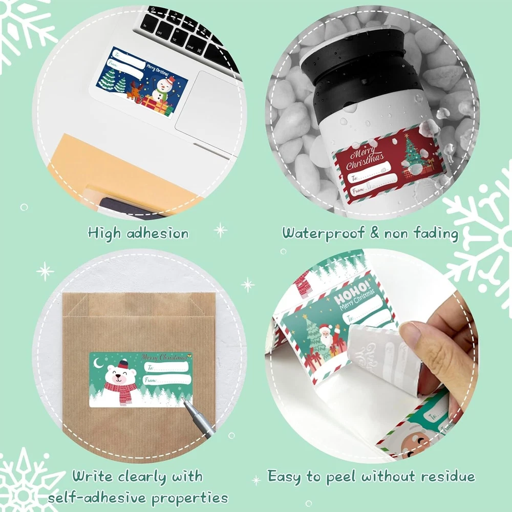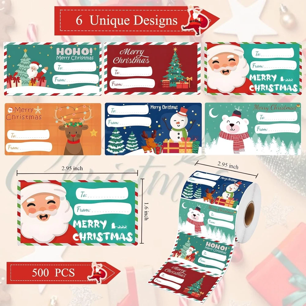 Christmas wrapping paper - Christmas Gift Tags - Gift tags for Xmas presents Gift Tags for Christmas Presents: Transform your Christmas presents with our set of 500 festive Christmas gift tags, featuring a wide variety of designs to enhance your holiday gifting experience. Perfect for adding a touch of charm to your gifts wrapped in classic or modern Christmas-themed paper. Versatile and Stylish: Our Christmas gift tags are more than just labels; they are versatile accessories crafted from premium materials. These self-adhesive tags effortlessly adhere to gift wrap, gift bags, or even personalized ornaments, ensuring a seamless and elegant presentation for all your holiday gifts. Time-Saving Solution: Bid farewell to the tedious task of tying ribbons or dealing with intricate wrapping. Our Christmas gift tags offer the convenience of self-adhesive backing, making the gift-wrapping process swift and hassle-free. Spend less time on wrapping and more time enjoying the festive season with your loved ones. Personalized Expression: Make each gift special with our Christmas name tags stickers included in the set. Whether you're tagging gifts for teens, men, women, or kids, these tags provide an easy and stylish way to address each gift uniquely. Leave a lasting impression with personalized holiday gifts tailored to each recipient. Comprehensive Festive Pack: With a generous pack of 500 Christmas gift tags, you'll have an abundance of tags for all your holiday gifts and cards. Whether you're preparing gifts for friends, family, or colleagues, this set ensures you're well-equipped to spread joy and cheer during the holiday season.