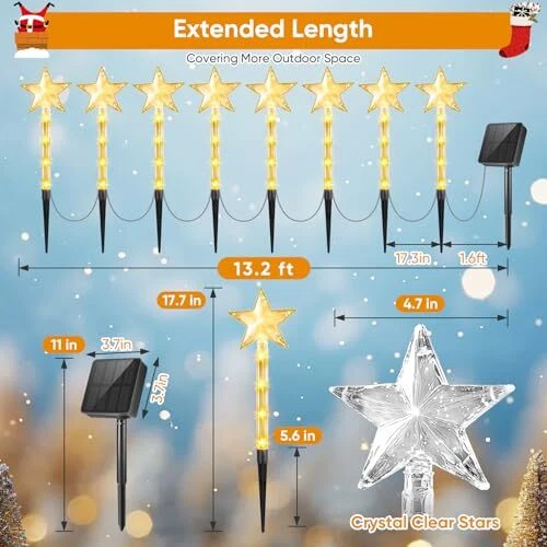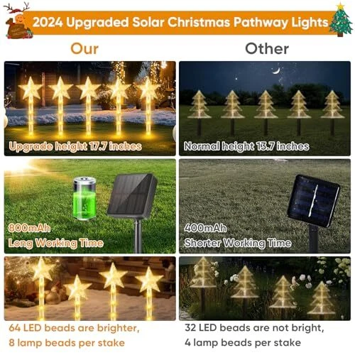Return Policy Fast Delivery Trusted seller Christmas Decorations Solar Lights Outdoor: 8 Pack 64 LED Solar Christmas Lights Outdoor Waterproof, 8 Warm White Lighting Modes Christmas Pathway Lights Xmas Decor for Outside Yard Garden Backyard Product Description Gorgeous Outdoor Christmas Decorations: Light up the festive season with these warm-colored solar Christmas lights. Made of transparent material, these Christmas solar lights glow bright and warmly at night. The 64 super-bright LED beads and cute tree-top star shape bring a cheerful Christmas atmosp to your garden, yard, and pathway. Charming Star Christmas Lights: These lovely outdoor Christmas lights feature a delicate star design. They can be paired with other Christmas outdoor decorations, making them perfect for Christmas trees, balconies, and garden decor. With 8 rhythmic warm white light modes, you can create cheerful holiday colors and flashing patterns. Stand out in a sea of colorful lights and win the community's decoration competition. Cute Solar Christmas Decorations: Transform any outside area with our solar Christmas lights. These solar pathway lights are easy to install and connected by 13.2 feet of durable wire. Illuminate gardens, yards, paths, and snowy areas to create a magical Christmas atmosp that lasts all season long. Solar Christmas Lights Outdoor Waterproof: Made of high-quality ABS material, these snowflake lights are durable and waterproof up to IP65. These solar lights can withstand rain, snow, and frost, making them perfect for outdoor use. The 800 mAh battery charges for 6-8 hours during the day and provides up to 8-10 hours of light at night. Perfect Christmas & New Year Gifts: A festival without outside Christmas decorations can feel dull. The thoughtful gift box design allows you to write your blessings on the top, making it a unique Christmas or New Year gift for parents and friends. Whether you are hosting Christmas celebrations or creating a joyful New Year atmosp, these Christmas yard decorations will give you an unforgettable experience and save on holiday electricity bills. Shipping Returns Payment Shipping Shipping is FREE to all addresses other than APO/PO boxes in the lower 48 states. All our stock ships from US-based warehouses. Shipped via USPS or UPS (depending on location and package weight) Unless stated otherwise, all orders will ship within 24-72 hours of your payment being processed. Check our feedback to see the great reviews of FAST shipping we offer. Returns Seller does not accept returns Payment We currently accept payment via eBay managed payments only. Once payment is cleared, we will dispatch your shipment within 1-3 business days. Please refer to the "Shipping" tab for more information regarding shipping speed to your destination.