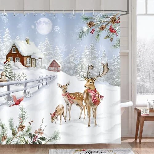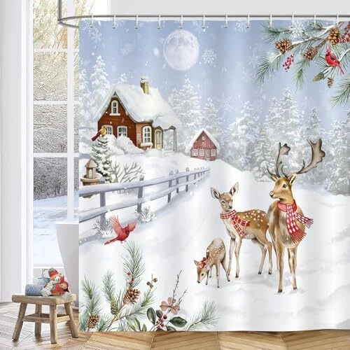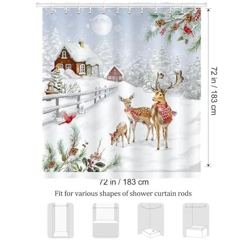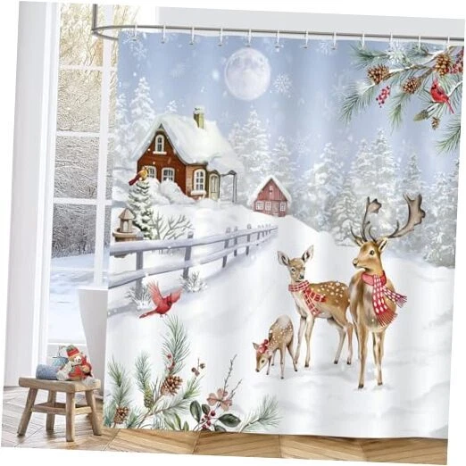 Return Policy Fast Delivery Trusted seller Christmas Deer Shower Curtain, Xmas Cardinals on Pine Branches Winter Forest Farmhouse Bathroom Curtain 72 x 72 Inch Polyester Fabric Waterproof Bath Curtain with 12 Hooks Product Description Material: Crafted from 100% polyester, the shower curtain is soft, durable, waterproof, and dries quickly. Design: Escape to a peaceful winter wonderland with our serene shower curtain featuring a family of deer in a snowy landscape. The rustic charm of a cabin and cardinals add a touch of holiday warmth to your bathroom. Size: 72 x 72 Inch (183 x 183 cm), due to manual measurement, please kindly allow 1-2 cm deviation. The standard size shower curtain fits for most bathtubs and shower stalls. Easy to Install: The shower curtain includes 12 plastic curtain hooks and 12 reinforced metal grommets, easy to install and and slide. Easy Care: It can be cleaned with a quick rinse, wipe after a shower or machine washable in cold water, tumble dry low, do not bleach. Shipping Returns Payment Shipping Shipping is FREE to all addresses other than APO/PO boxes in the lower 48 states. All our stock ships from US-based warehouses. Shipped via USPS or UPS (depending on location and package weight) Unless stated otherwise, all orders will ship within 24-72 hours of your payment being processed. Check our feedback to see the great reviews of FAST shipping we offer. Returns Seller does not accept returns Payment We currently accept payment via eBay managed payments only. Once payment is cleared, we will dispatch your shipment within 1-3 business days. Please refer to the "Shipping" tab for more information regarding shipping speed to your destination.