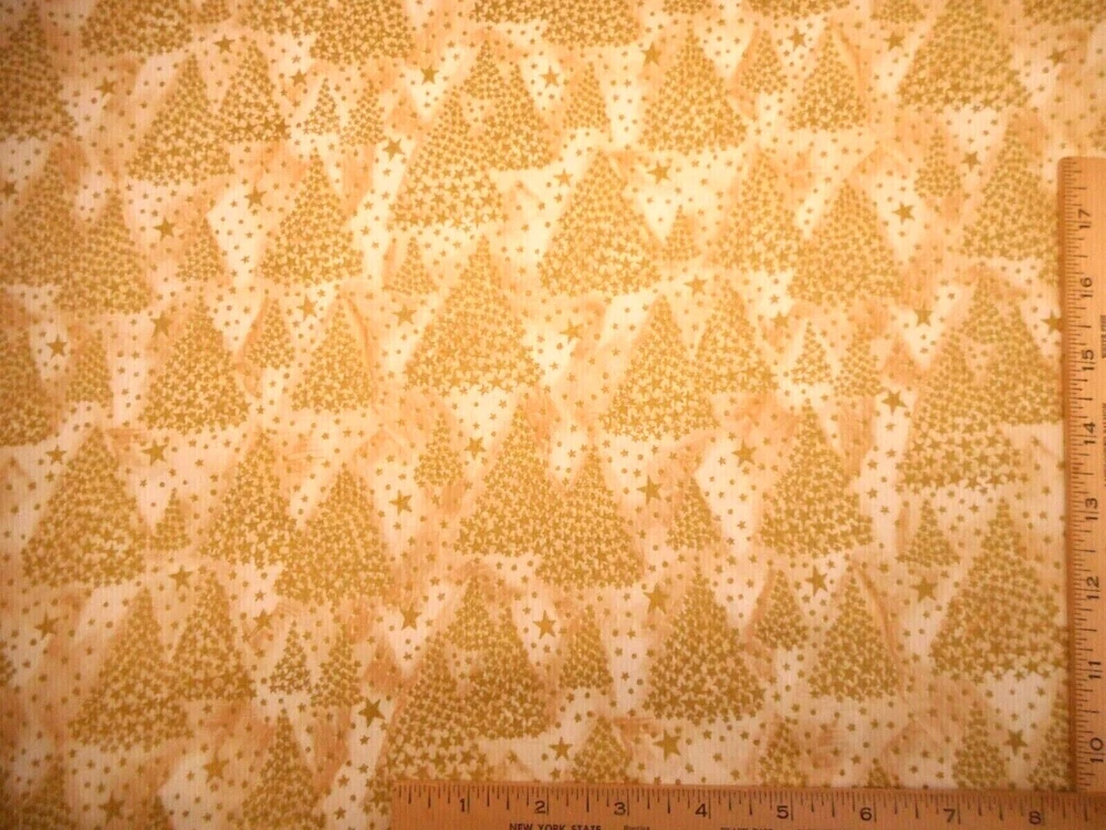 This is a very nice fabric that is 100% cotton. This is a premium quilting cotton by Woodrow Studio called Sing A Song of Christmas that is out of print. It has metallic gold star Xmas trees & tossed metallic gold stars & dots on an ivory background that has some beige in it. READ: Because computer monitors show colors and shades differently, the fabric colors can vary from the photos. If you have any questions regarding this, please contact me before p urchasing the item. I have been a quilter for 30 years and am an accomplished seamstress & would be happy to answer any questions you might have. This is for a 1 3/8 Yard of Fabric. THERE IS ANOTHER 1 YARD ATTACHED TO THIS FABRIC & IF YOU WOULD ALSO LIKE IT, PLEASE CONTACT ME BEFORE PURCHASING & PAYING FOR THE ITEM SO I CAN ADD IN THE EXTRA 1 YARD ($9.99) & COMBINE SHIPPING FOR YOU. If you have a problem with anything you purchase from me, please contact me before leaving neutral or negative feedback and I will work it out with you. Payment is due within 48 hours. If payment isn't received within 5 days, it will automatically go to Ebay's resolution center for non-payment. INSTRUCTIONS FOR COMBINED SHIPPING: I Do combine shipping. You must put your items into your shopping cart and request an invoice from me using the request total button before completing the payment process. IF YOU'RE UNABLE TO COMBINE YOUR SHIPPING, PLEASE CONTACT ME. Payment is due upon receipt of your invoice. Thank you for looking and God bless you and your family. IF THERE IS A PROBLEM WITH ANY PURCHASE, PLEASE CONTACT ME, THE SELLER, VIA EBAY'S MESSAGING SYSTEM PRIOR TO OPENING A CASE--OPENING A CASE, EVEN IF RESOLVED SMOOTHLY, CAN HURT THE SELLER'S RATINGS. THANK YOU