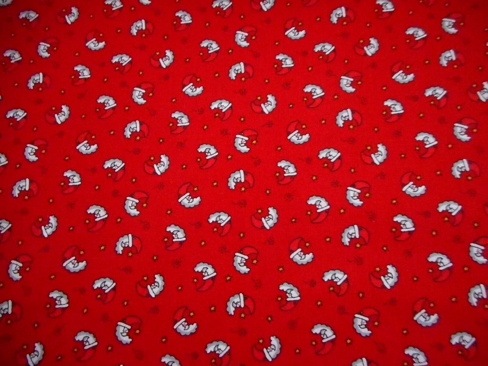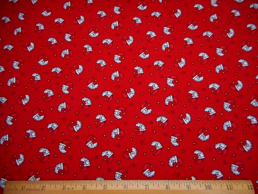 This is a very nice fabric that is 100% cotton. This fabric is out of print. It has moon shaped Santas & tiny gold stars outlined in black on a red background. READ: Because computer monitors show colors and shades differently, the fabric colors can vary from the photos. If you have any questions regarding this, please contact me before p urchasing the item. I have been a quilter for 30 years and am an accomplished seamstress & would be happy to answer any questions you might have. This is for a 1 Half-Yard of Fabric. If you purchase more than 1 Half-Yard, I will give you one continuous cut. If you have a problem with anything you purchase from me, please contact me before leaving neutral or negative feedback and I will work it out with you. Payment is due within 48 hours. If payment isn't received within 5 days, it will automatically go to Ebay's resolution center for non-payment. INSTRUCTIONS FOR COMBINED SHIPPING: I Do combine shipping. You must add the items to your shopping cart and request an invoice from me using the REQUEST TOTAL BUTTON BEFORE completing the payment process, or I won't be able to combine your shipping. Payment is due upon receipt of your invoice. Thank you for looking and God bless you and your family. IF THERE IS A PROBLEM WITH ANY PURCHASE, PLEASE CONTACT ME, THE SELLER, VIA EBAY'S MESSAGING SYSTEM PRIOR TO OPENING A CASE--OPENING A CASE, EVEN IF RESOLVED SMOOTHLY, CAN HURT THE SELLER'S RATINGS. THANK YOU