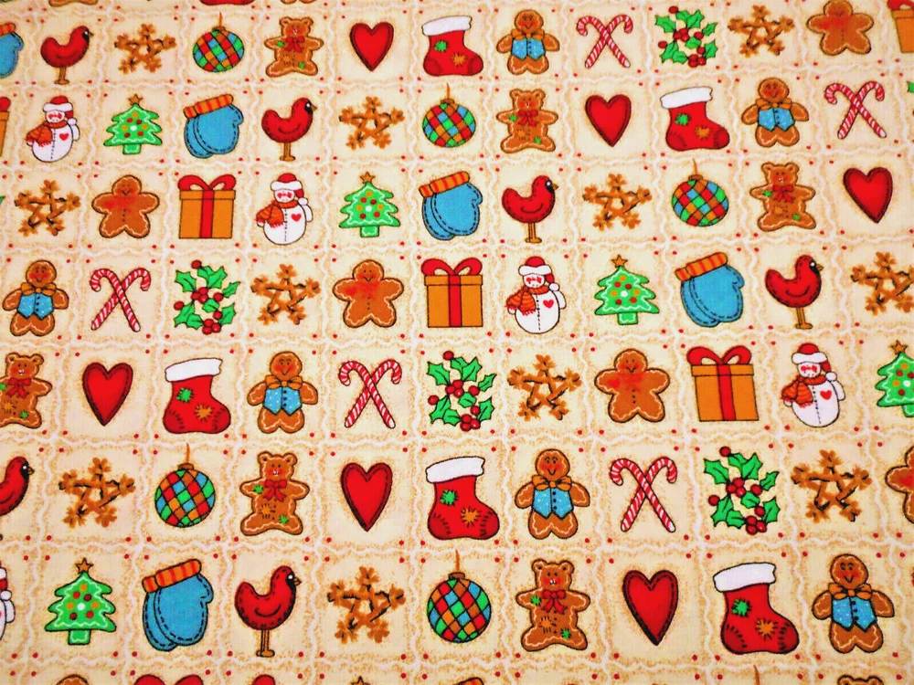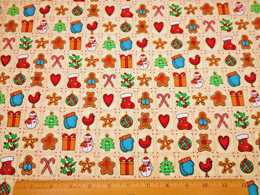 This is a very nice fabric that is 100% cotton. This fabric is out of print. It has snowmen, candy cane, gingerbread men, gift, Xmas tree, holly, mittens, etc. patches on a mainly ivory background. The patches are approx. 1 x 1.25" each. READ: Because computer monitors show colors and shades differently, the fabric colors can vary from the photos. If you have any questions regarding this, please contact me before p urchasing the item. I have been a quilter for 30 years and am an accomplished seamstress & would be happy to answer any questions you might have. This is for a 1 Half-Yard of Fabric. If you purchase more than 1 Half-Yard, I will give you one continuous cut. If you have a problem with anything you purchase from me, please contact me before leaving neutral or negative feedback and I will work it out with you. Payment is due within 48 hours. If payment isn't received within 5 days, it will automatically go to Ebay's resolution center for non-payment. INSTRUCTIONS FOR COMBINED SHIPPING: I Do combine shipping. You must add the items to your shopping cart and request an invoice from me using the REQUEST TOTAL BUTTON, BEFORE completing the payment process. Payment is due upon receipt of your invoice. Thank you for looking and God bless you and your family. IF THERE IS A PROBLEM WITH ANY PURCHASE, PLEASE CONTACT ME, THE SELLER, VIA EBAY'S MESSAGING SYSTEM PRIOR TO OPENING A CASE--OPENING A CASE, EVEN IF RESOLVED SMOOTHLY, CAN HURT THE SELLER'S RATINGS. THANK YOU