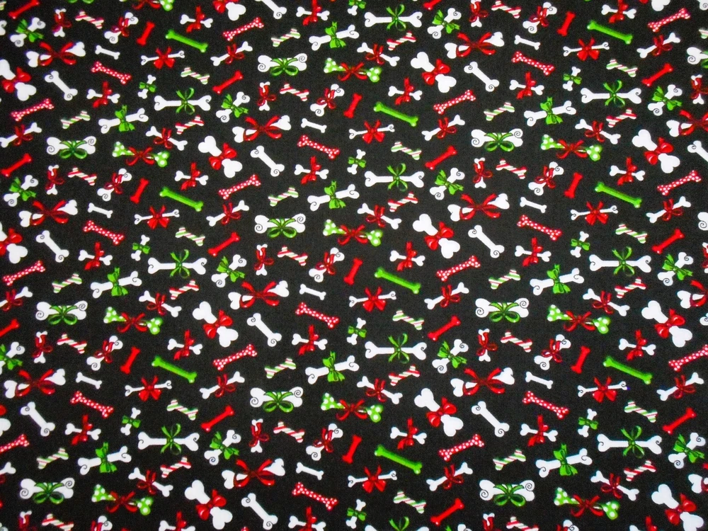 This is a very nice fabric that is 100% cotton. This a premium quilting cotton by Fabric Traditions. It has white, red, green & candy cane striped dog bones tied with ribbons on a black background. READ: Because computer monitors show colors and shades differently, the fabric colors can vary from the photos. If you have any questions regarding this, please contact me before p urchasing the item. I have been a quilter for 30 years and am an accomplished seamstress & would be happy to answer any questions you might have. This is for a 1 Half-Yard of Fabric. If you purchase more than 1 Half-Yard, I will give you one continuous cut. If you have a problem with anything you purchase from me, please contact me before leaving neutral or negative feedback and I will work it out with you. Payment is due within 48 hours. If payment isn't received within 5 days, it will automatically go to Ebay's resolution center for non-payment. INSTRUCTIONS FOR COMBINED SHIPPING: I Do combine shipping. You must add the items to your shopping cart and request an invoice from me using the REQUEST TOTAL BUTTON BEFORE completing the payment process, or I won't be able to combine your shipping. Payment is due upon receipt of your invoice. Thank you for looking and God bless you and your family. IF THERE IS A PROBLEM WITH ANY PURCHASE, PLEASE CONTACT ME, THE SELLER, VIA EBAY'S MESSAGING SYSTEM PRIOR TO OPENING A CASE--OPENING A CASE, EVEN IF RESOLVED SMOOTHLY, CAN HURT THE SELLER'S RATINGS. THANK YOU