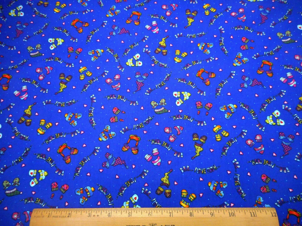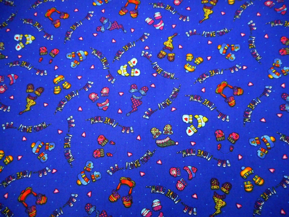 This is a very nice fabric that is 100% cotton. This is a premium quilting cotton by RJR Fabrics called The Polar Brigade. It has hats, mittens, hearts & I Love Snow Brr... on dark royal blue background. READ: Because computer monitors show colors and shades differently, the fabric colors can vary from the photos. If you have any questions regarding this, please contact me before p urchasing the item. I have been a quilter for 30 years and am an accomplished seamstress & would be happy to answer any questions you might have. This is for a 1 Yard of Fabric. If you purchase more than 1 Yard, I will give you one continuous cut. If you have a problem with anything you purchase from me, please contact me before leaving neutral or negative feedback and I will work it out with you. Payment is due within 48 hours. If payment isn't received within 5 days, it will automatically go to Ebay's resolution center for non-payment. INSTRUCTIONS FOR COMBINED SHIPPING: I Do combine shipping. You must add the items to your shopping cart and request an invoice from me using the REQUEST TOTAL BUTTON, BEFORE completing the payment process, or I won't be able to combine your shipping. Payment is due upon receipt of your invoice. Thank you for looking and God bless you and your family. IF THERE IS A PROBLEM WITH ANY PURCHASE, PLEASE CONTACT ME, THE SELLER, VIA EBAY'S MESSAGING SYSTEM PRIOR TO OPENING A CASE--OPENING A CASE, EVEN IF RESOLVED SMOOTHLY, CAN HURT THE SELLER'S RATINGS. THANK YOU