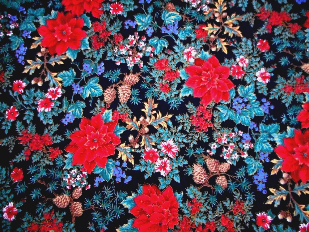 This is a very nice fabric that is 100% cotton. This fabric is out of print. It has red poinsettias, blue & red berries, red & white flowers, pinecones & acorns with green leaves all outlined in metallic gold on a black background. READ: Because computer monitors show colors and shades differently, the fabric colors can vary from the photos. If you have any questions regarding this, please contact me before p urchasing the item. I have been a quilter for 30 years and am an accomplished seamstress & would be happy to answer any questions you might have. This is for a 1 Yard of Fabric. If you purchase more than 1 Yard, I will give you one continuous cut. If you have a problem with anything you purchase from me, please contact me before leaving neutral or negative feedback and I will work it out with you. Payment is due within 48 hours. If payment isn't received within 5 days, it will automatically go to Ebay's resolution center for non-payment. INSTRUCTIONS FOR COMBINED SHIPPING: I Do combine shipping. You must add the items to your shopping cart and request an invoice from me using the REQUEST TOTAL BUTTON BEFORE completing the payment process, or I won't be able to combine your shipping. Payment is due upon receipt of your invoice. Thank you for looking and God bless you and your family. IF THERE IS A PROBLEM WITH ANY PURCHASE, PLEASE CONTACT ME, THE SELLER, VIA EBAY'S MESSAGING SYSTEM PRIOR TO OPENING A CASE--OPENING A CASE, EVEN IF RESOLVED SMOOTHLY, CAN HURT THE SELLER'S RATINGS. THANK YOU