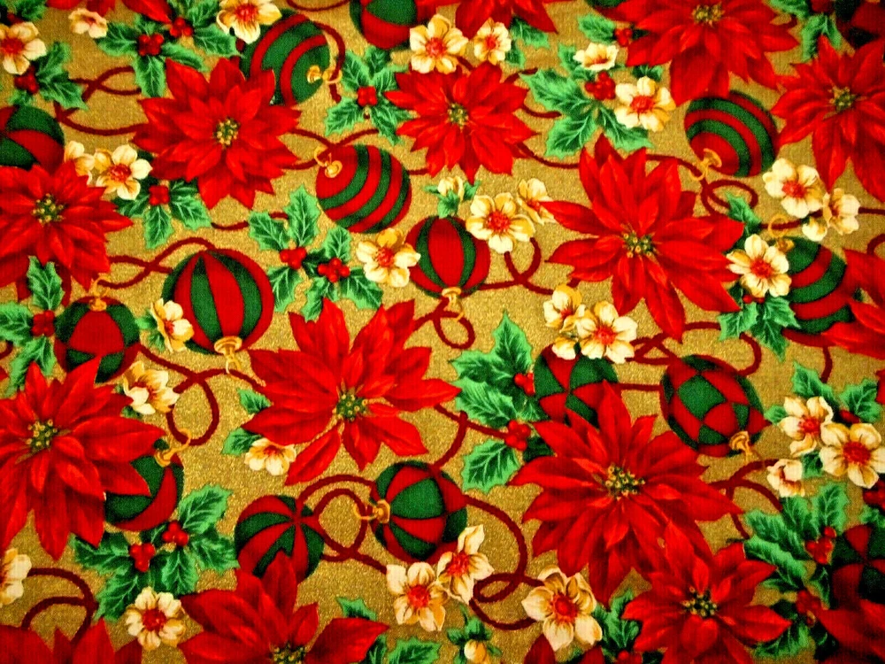 This is a very nice fabric that is 100% cotton. This fabric is out of print. This is an exceptionally beautiful fabric with red poinsettias & green leaves, red & green ornaments & a swirling red cord on a sparkly looking metallic gold background. Computer monitors show colors and shades differently. If you have any questions regarding this, please contact me before p urchasing the item. I have been a quilter for 30 years and am an accomplished seamstress & would be happy to answer any questions you might have. This is for a 1 Yard of Fabric. If you purchase more than 1 Yard, I will give you one continuous cut. If you have a problem with anything you purchase from me, please contact me before leaving neutral or negative feedback and I will work it out with you. Payment is due within 48 hours. If payment isn't received within 5 days, it will automatically go to Ebay's resolution center for non-payment. INSTRUCTIONS FOR COMBINED SHIPPING: I Do combine shipping. You must add the items to your shopping cart and request an invoice from me using the REQUEST TOTAL BUTTON, BEFORE completing the payment process, or I won't be able to combine your shipping. Payment is due upon receipt of your invoice. Thank you for looking and God bless you and your family. IF THERE IS A PROBLEM WITH ANY PURCHASE, PLEASE CONTACT ME, THE SELLER, VIA EBAY'S MESSAGING SYSTEM PRIOR TO OPENING A CASE--OPENING A CASE, EVEN IF RESOLVED SMOOTHLY, CAN HURT THE SELLER'S RATINGS. THANK YOU