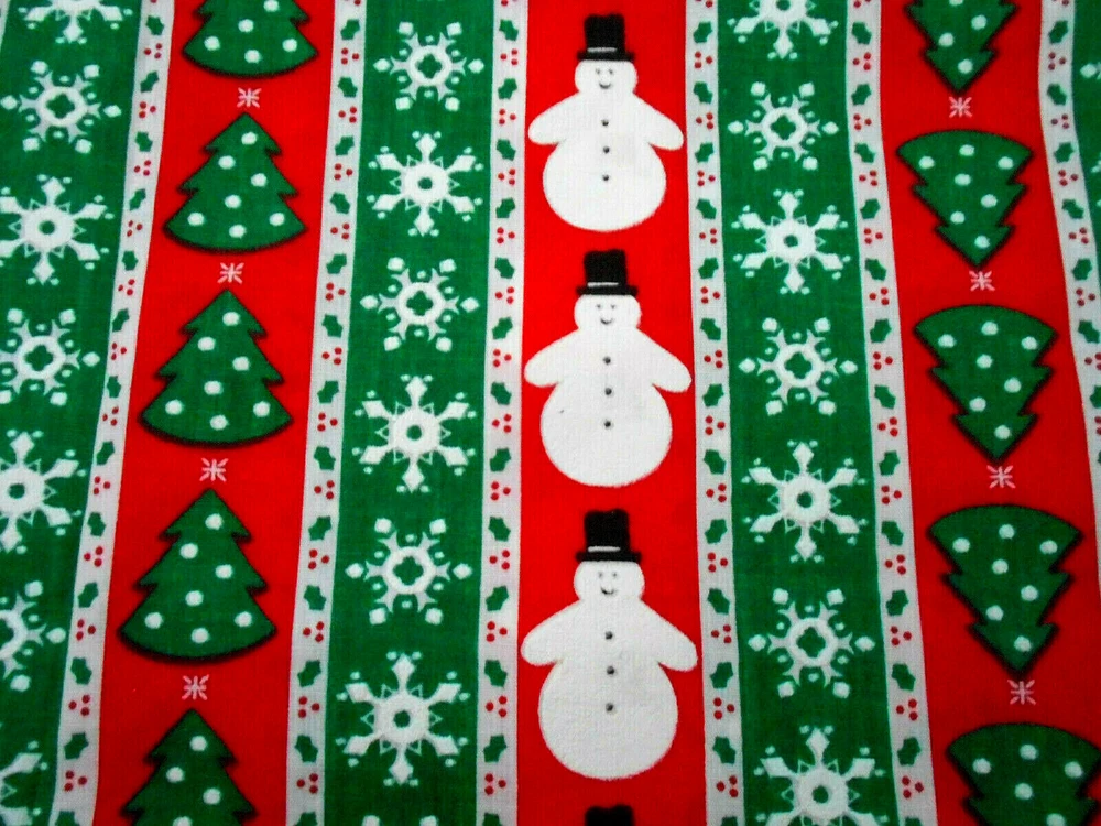 This is a very nice fabric that is 100% cotton. This fabric is out of print. It has embossed snowmen, snowflakes & embossed dots on the Xmas trees on red & green stripes with narrow white stripes that have holly in them separating them.. Computer monitors show colors and shades differently. If you have any questions regarding this, please contact me before p urchasing the item. I have been a quilter for 30 years and am an accomplished seamstress & would be happy to answer any questions you might have. This is for a 1 Yard of Fabric. If you purchase more than 1 Yard, I will give you one continuous cut. If you have a problem with anything you purchase from me, please contact me before leaving neutral or negative feedback and I will work it out with you. Payment is due within 48 hours. If payment isn't received within 5 days, it will automatically go to Ebay's resolution center for non-payment. INSTRUCTIONS FOR COMBINED SHIPPING: I Do combine shipping. You must put your items into your shopping cart and request an invoice from me using the request total button before completing the payment process. IF YOU'RE UNABLE TO COMBINE YOUR SHIPPING, PLEASE CONTACT ME. Payment is due upon receipt of your invoice. Thank you for looking and God bless you and your family. IF THERE IS A PROBLEM WITH ANY PURCHASE, PLEASE CONTACT ME, THE SELLER, VIA EBAY'S MESSAGING SYSTEM PRIOR TO OPENING A CASE--OPENING A CASE, EVEN IF RESOLVED SMOOTHLY, CAN HURT THE SELLER'S RATINGS. THANK YOU