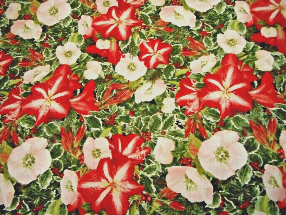 This is a very nice fabric that is 100% cotton. This is premium quilting cotton by David Textiles. It has red & white flowers with light pink highlights on green holly, red berries & green pine. Computer monitors show colors and shades differently. If you have any questions regarding this, please contact me before p urchasing the item. I have been a quilter for 30 years and am an accomplished seamstress & would be happy to answer any questions you might have. This is for a 1 Yard of Fabric. If you purchase more than 1 Yard, I will give you one continuous cut. If you have a problem with anything you purchase from me, please contact me before leaving neutral or negative feedback and I will work it out with you. Payment is due within 48 hours. If payment isn't received within 5 days, it will automatically go to Ebay's resolution center for non-payment. INSTRUCTIONS FOR COMBINED SHIPPING: I Do combine shipping. You must put your items into your shopping cart and request an invoice from me using the request total button before completing the payment process. IF YOU'RE UNABLE TO COMBINE YOUR SHIPPING, PLEASE CONTACT ME. Payment is due upon receipt of your invoice. Thank you for looking and God bless you and your family. IF THERE IS A PROBLEM WITH ANY PURCHASE, PLEASE CONTACT ME, THE SELLER, VIA EBAY'S MESSAGING SYSTEM PRIOR TO OPENING A CASE--OPENING A CASE, EVEN IF RESOLVED SMOOTHLY, CAN HURT THE SELLER'S RATINGS. THANK YOU