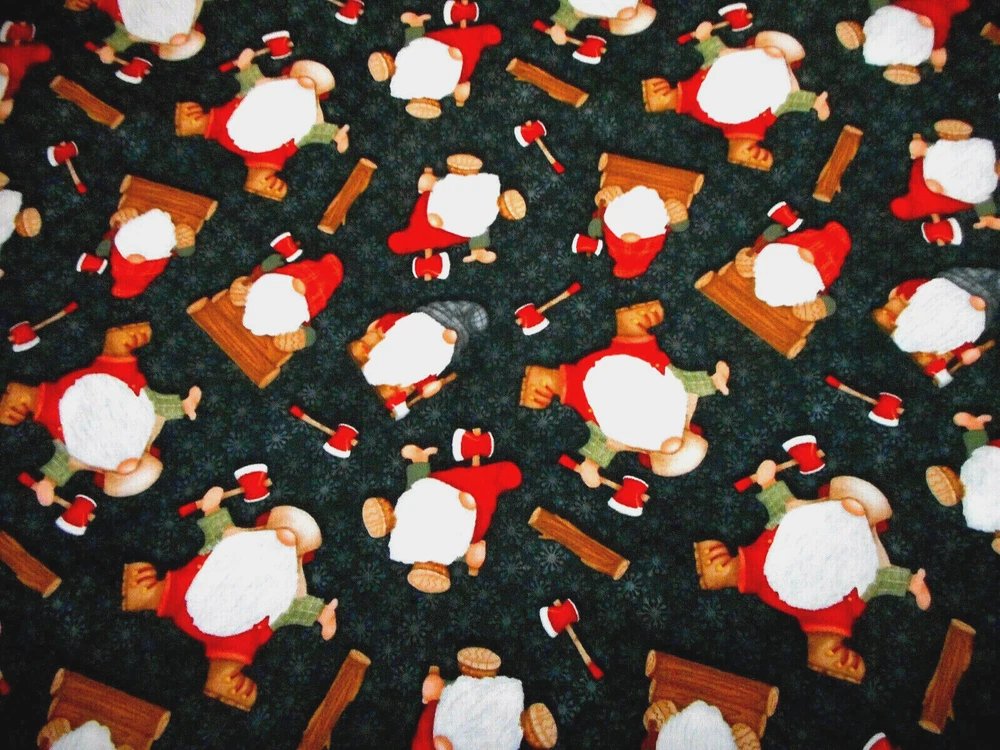 This is a very nice fabric that is 100% cotton. This is a premium quilting cotton by Henry Glass called Timber Gnomies. It has gnomies with logs & axes on a black background that has gray snowflakes on it. READ: Because computer monitors show colors and shades differently, the fabric colors can vary from the photos. If you have any questions regarding this, please contact me before p urchasing the item. I have been a quilter for 30 years and am an accomplished seamstress & would be happy to answer any questions you might have. This is for a 1 Yard of Fabric. If you purchase more than 1 Yard, I will give you one continuous cut. If you have a problem with anything you purchase from me, please contact me before leaving neutral or negative feedback and I will work it out with you. Payment is due within 48 hours. If payment isn't received within 5 days, it will automatically go to Ebay's resolution center for non-payment. INSTRUCTIONS FOR COMBINED SHIPPING: I Do combine shipping. You must add the items to your shopping cart and request an invoice from me using the REQUEST TOTAL BUTTON, BEFORE completing the payment process, or I won't be able to combine your shipping. Payment is due upon receipt of your invoice. Thank you for looking and God bless you and your family. IF THERE IS A PROBLEM WITH ANY PURCHASE, PLEASE CONTACT ME, THE SELLER, VIA EBAY'S MESSAGING SYSTEM PRIOR TO OPENING A CASE--OPENING A CASE, EVEN IF RESOLVED SMOOTHLY, CAN HURT THE SELLER'S RATINGS. THANK YOU