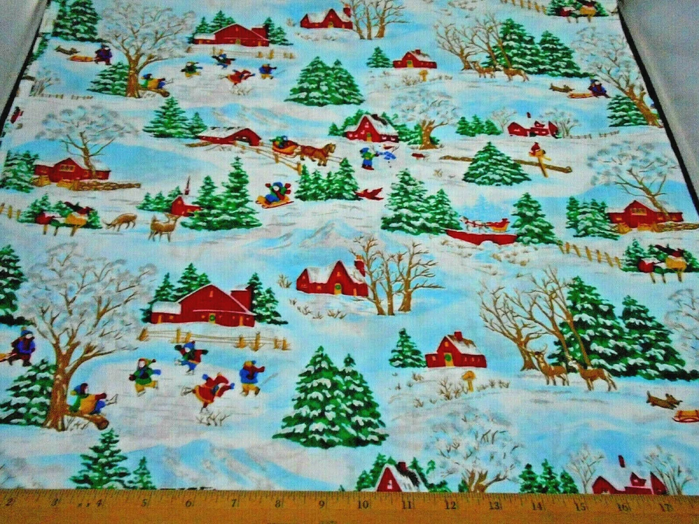 This is a very nice fabric that is 100% cotton. This a Concord House Fabric called Winter Wonderland & it is a vintage scene with homes, children playing in the snow, trees, deer, etc. READ: Because computer monitors show colors and shades differently, the fabric colors can vary from the photos. If you have any questions regarding this, please contact me before p urchasing the item. I have been a quilter for 30 years and am an accomplished seamstress & would be happy to answer any questions you might have. This is for a Short Yard of Fabric that is 35.5", so it's only 1/2" short of a Full Yard. If you have a problem with anything you purchase from me, please contact me before leaving neutral or negative feedback and I will work it out with you. Payment is due within 48 hours. If payment isn't received within 5 days, it will automatically go to Ebay's resolution center for non-payment. INSTRUCTIONS FOR COMBINED SHIPPING: I Do combine shipping. You must add the items to your shopping cart and request an invoice from me using the REQUEST TOTAL BUTTON, BEFORE completing the payment process, or I won't be able to combine your shipping. Payment is due upon receipt of your invoice. Thank you for looking and God bless you and your family. IF THERE IS A PROBLEM WITH ANY PURCHASE, PLEASE CONTACT ME, THE SELLER, VIA EBAY'S MESSAGING SYSTEM PRIOR TO OPENING A CASE--OPENING A CASE, EVEN IF RESOLVED SMOOTHLY, CAN HURT THE SELLER'S RATINGS. THANK YOU