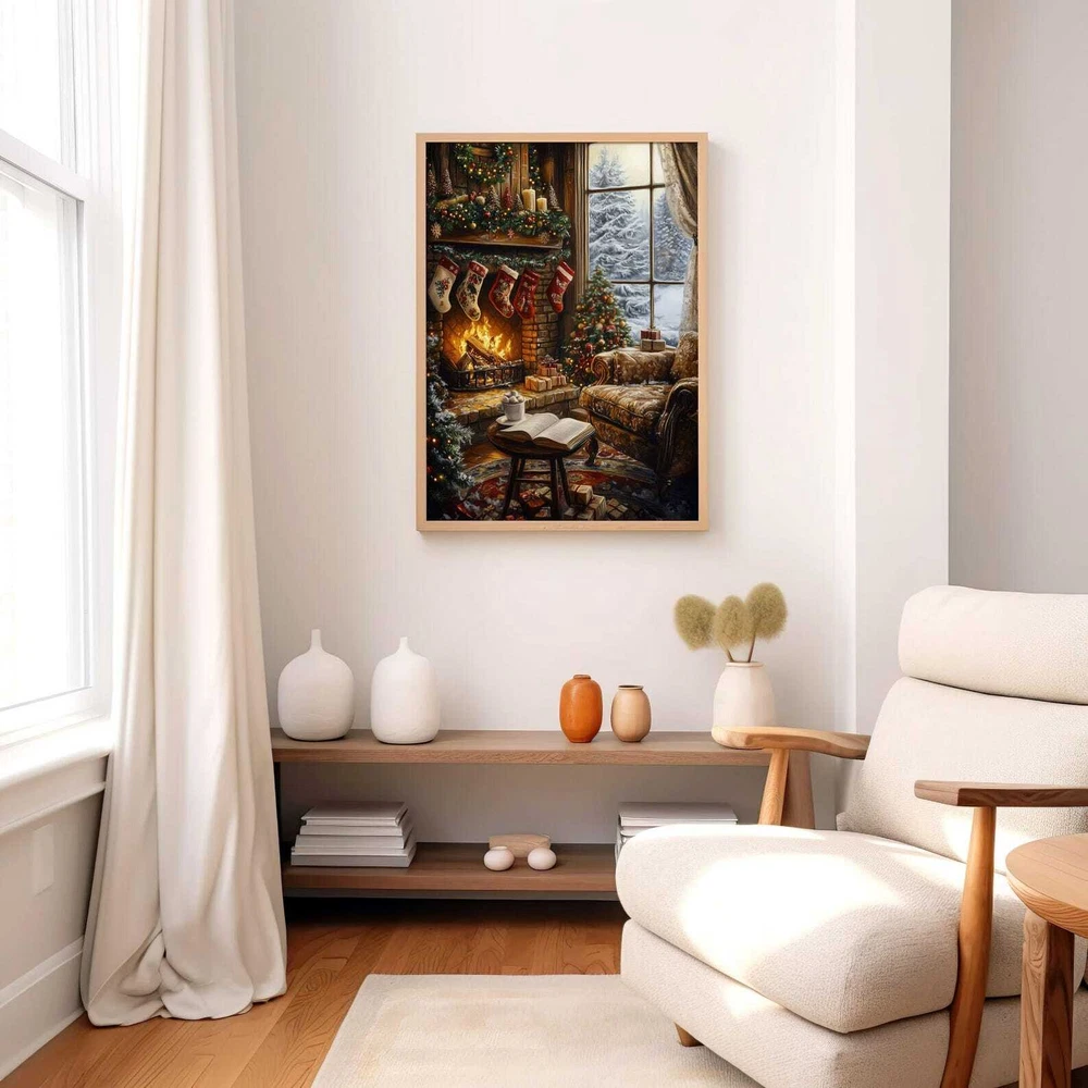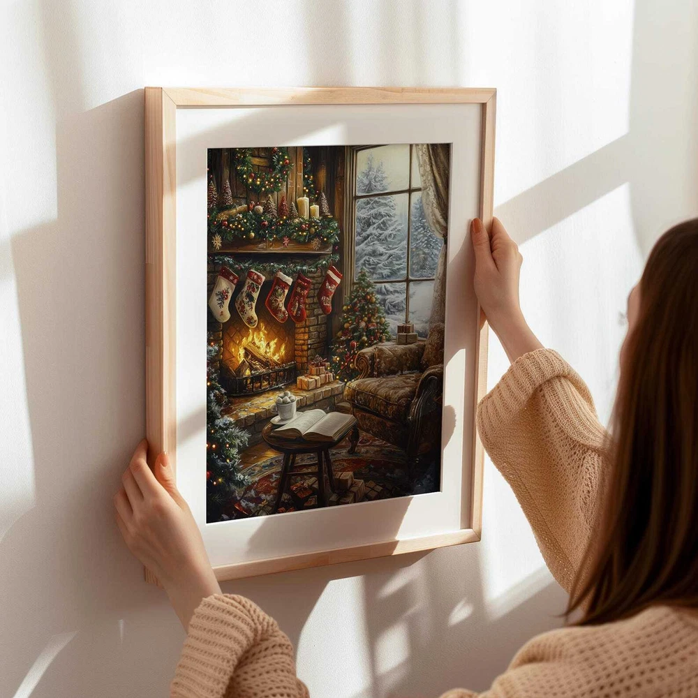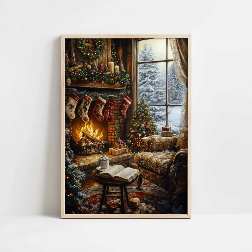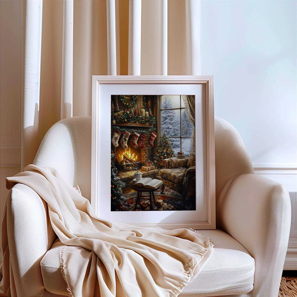 Christmas Fireplace And Book Art Print Cozy Holiday Wall Decor Book Lover Printable Winter Reading Nook Art Material: Premium luster photo paper Print type: Inkjet printing One side printed + The finish provides the highest possible resolution and color saturation + Lasts up to 200 years in color and 400 years in black-and-white + Printed on high-quality resin-coated photo base paper medium + Posters can be hung with double-sided tape, tacks, or framed + Hand washing with a gentle cry cloth is recommended for extended durability I will hand select the best choice of paper for your chosen design to ensure top quality results for a beautiful, bright and luxurious print. All prints are sealed in cellophane slips for protection during transportation, and are shipped in a protective cardboard envelope.