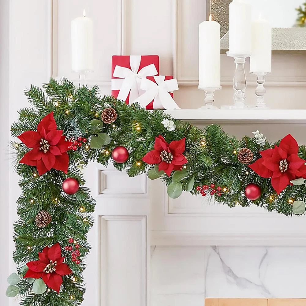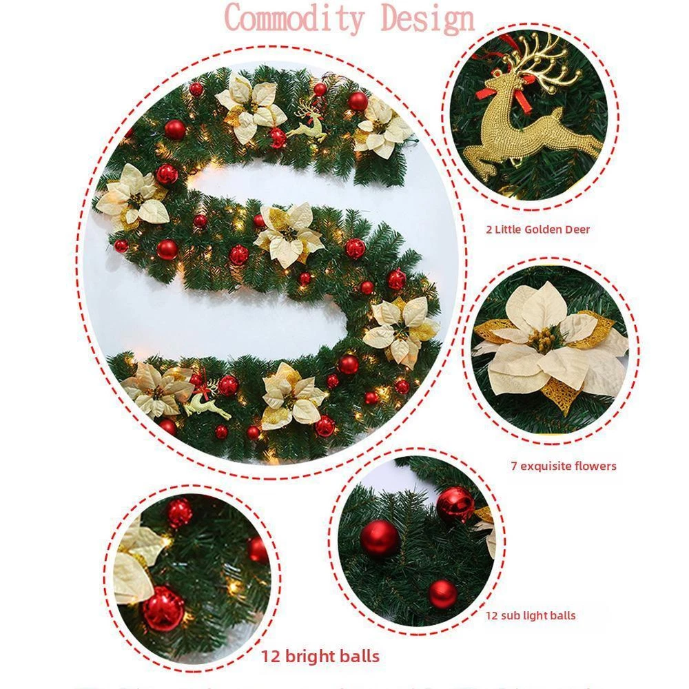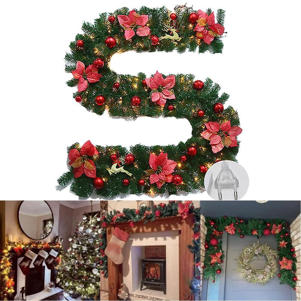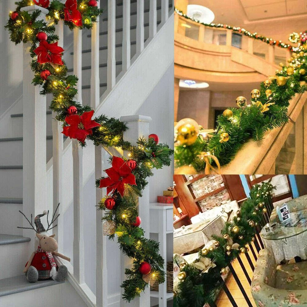 Christmas Garland 280cm Decorated Christmas Wreath Leaves A8B8